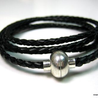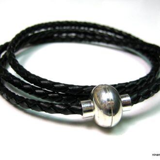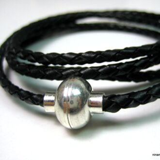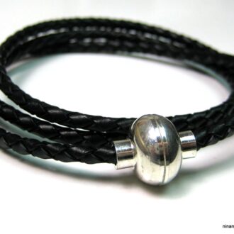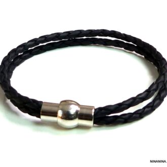 Découvrez ce magnifique Bracelet cuir homme luxe tressé Acier Inoxydable ! Composé de rondelles en acier inoxydable argenté et d’un fermoir contemporain aimanté en Acier également monté sur un cordon de cuir tressé noir de 6 mm de diamètre, il vous séduira à coup sûr!