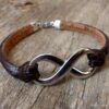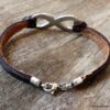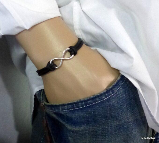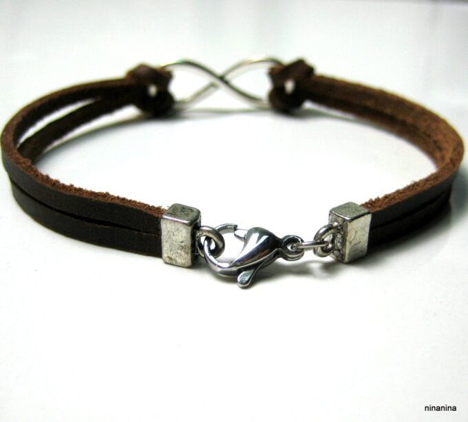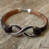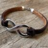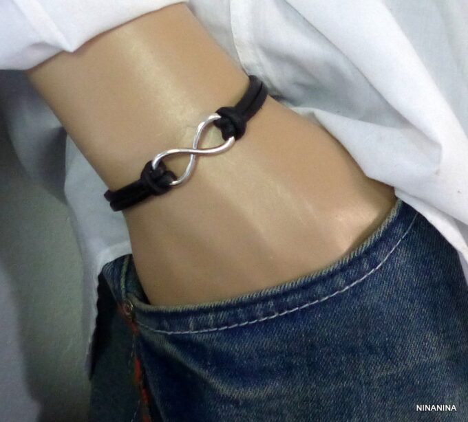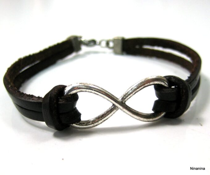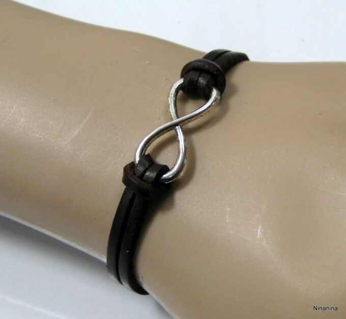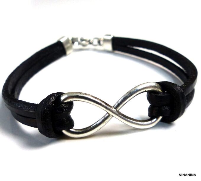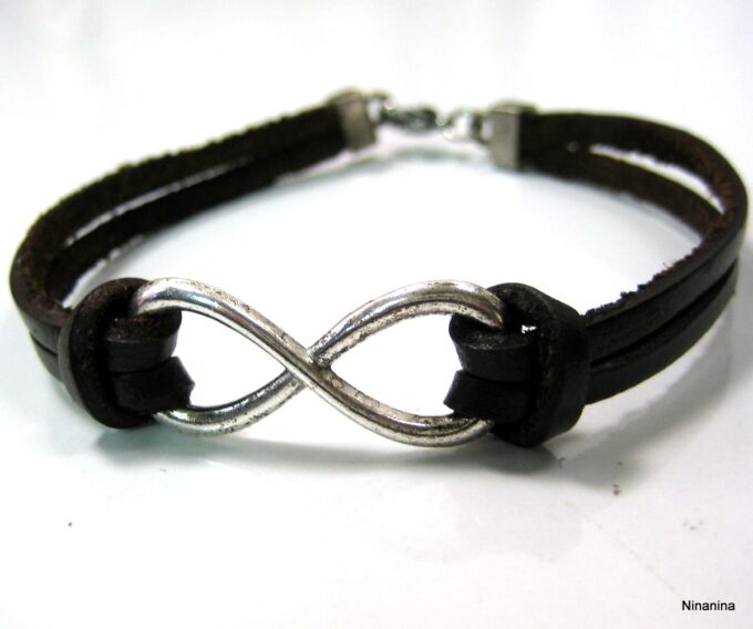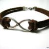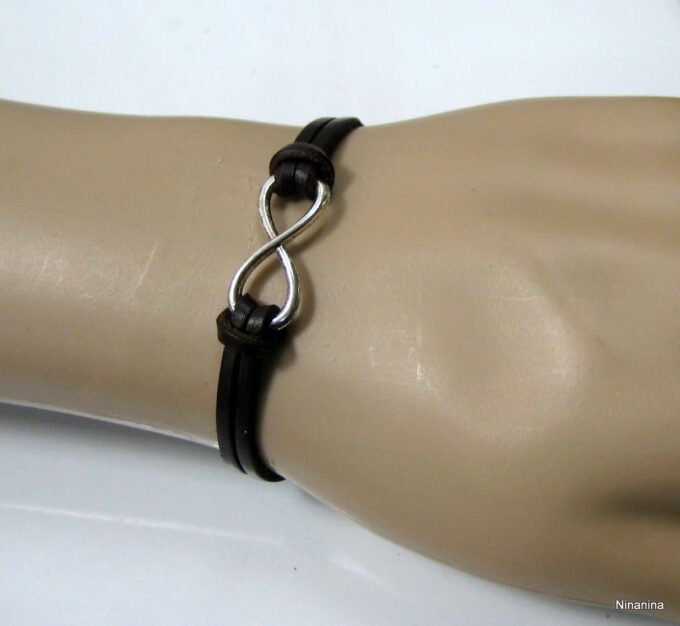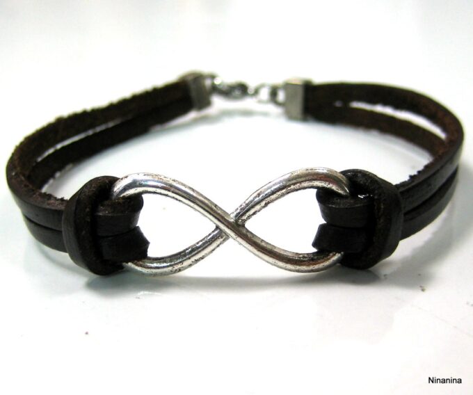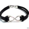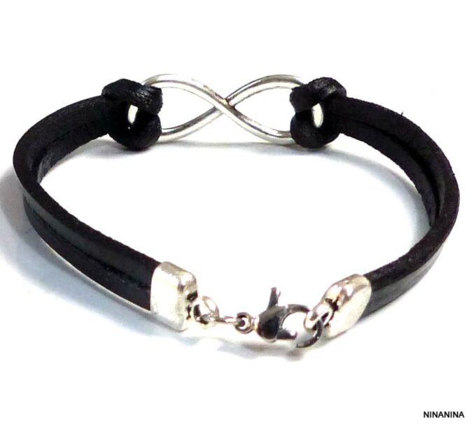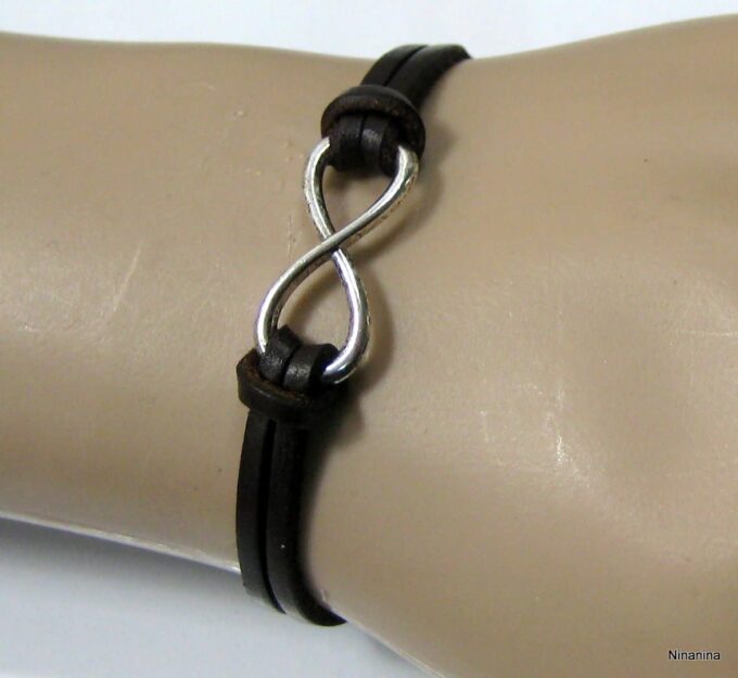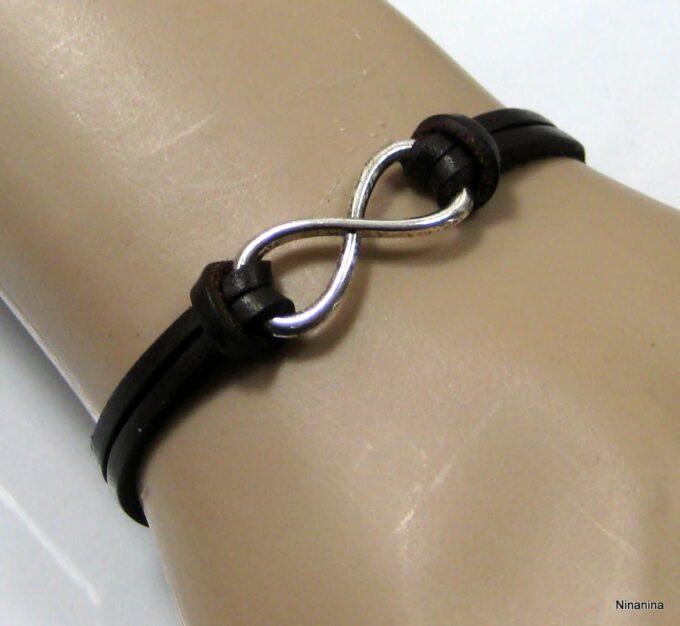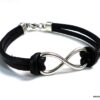 Bracelet homme cuir infini acier inoxydable argenté