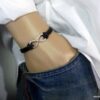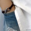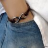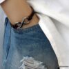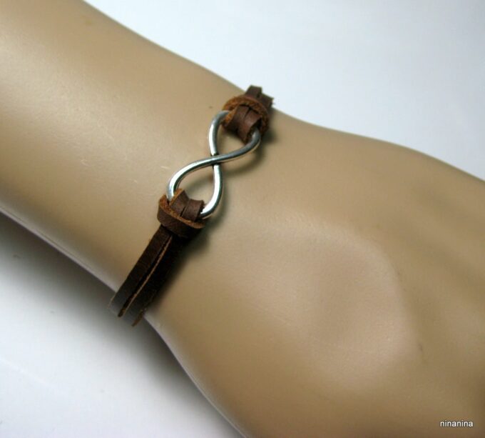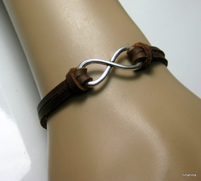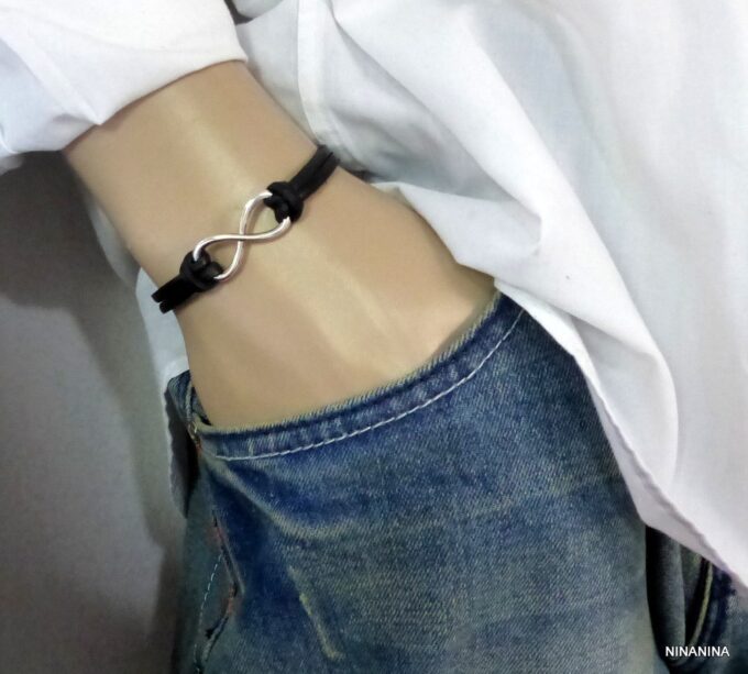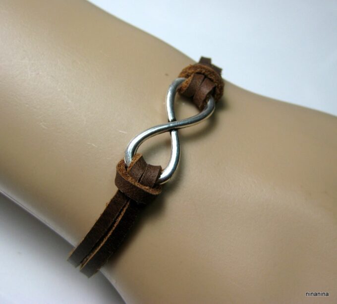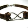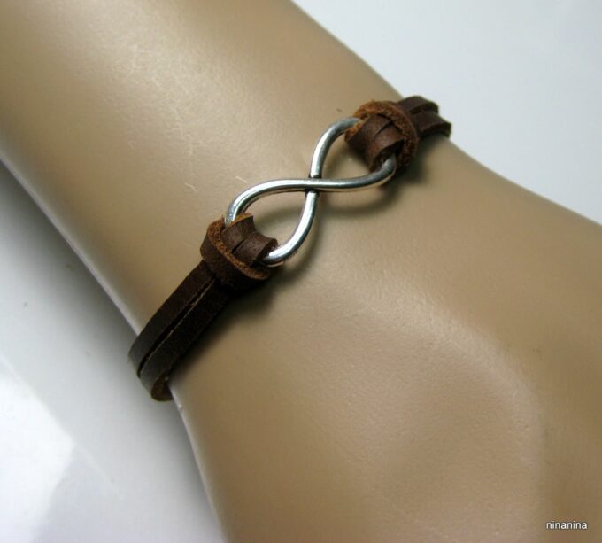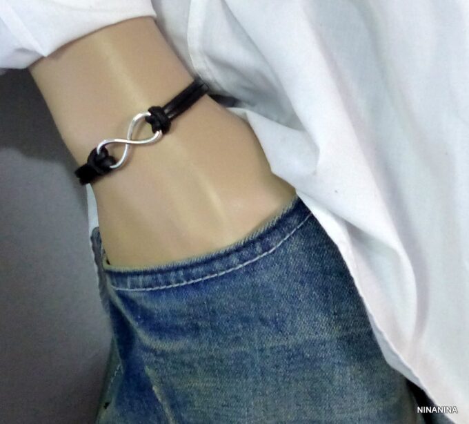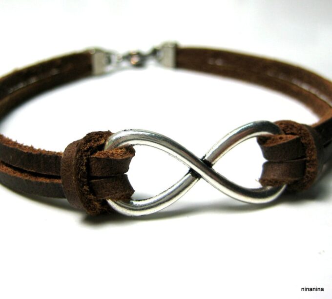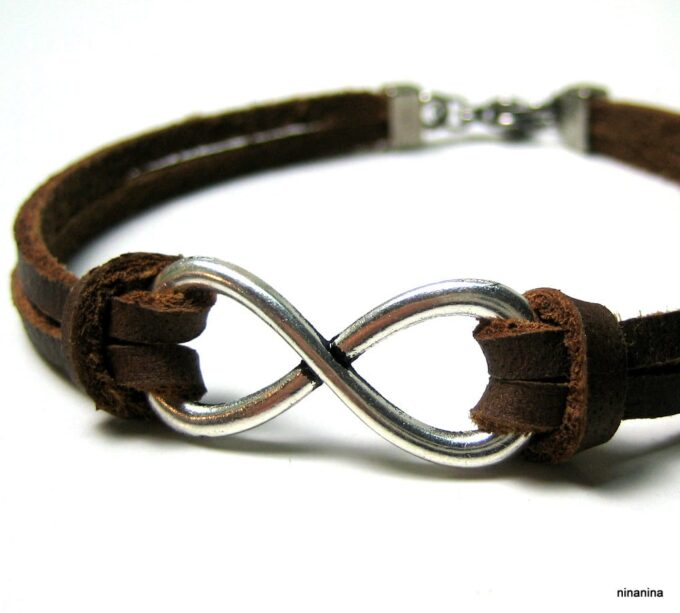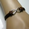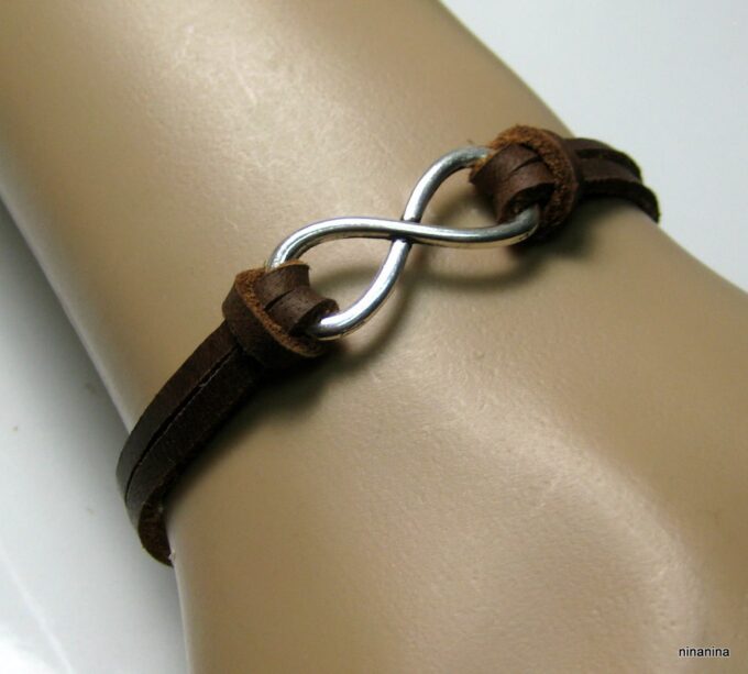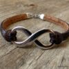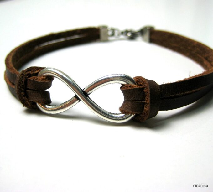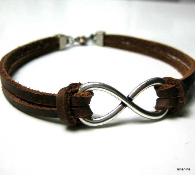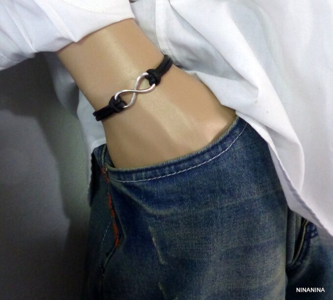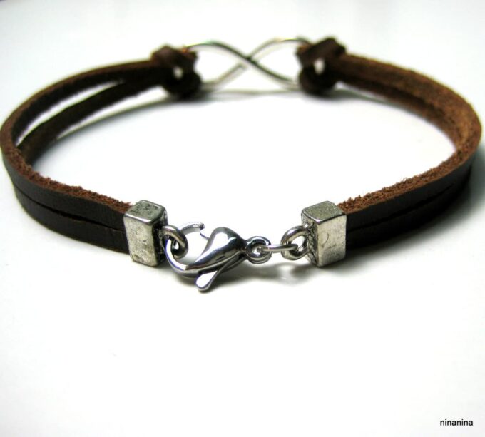 Bracelet homme cuir infini acier inoxydable argenté