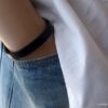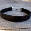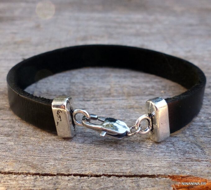 Ne cherchez plus ! Ce Bracelet cuir prénom personnalisé homme est fait pour vous ! Composé d’un fermoir en métal argenté montée sur une lanière de cuir noir (10 mm de large). ce Bracelet personnalisé enlacera votre poignet et l’habillera joliment du prénom de votre enfant ou de votre chéri. Personnalisable et destiné à un homme comme à une femme, ce joli Bracelet cuir prénom fera un cadeau parfait pour la fête des pères ou la fête des mères; La personnalisation et la gravure apportent une touche personnelle et fait de ce bracelet gravé un cadeau personnalisé unique au monde !
