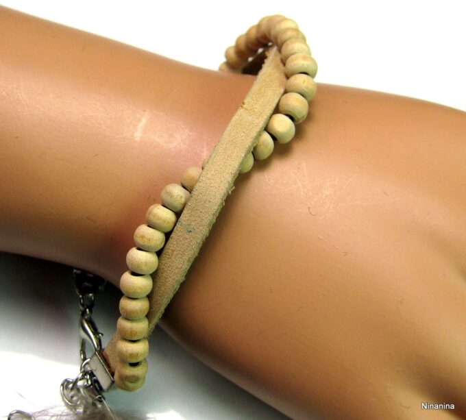 Soyez le premier à laisser votre avis sur “Bracelet cuir, plumes et perles de bois”