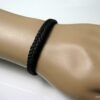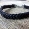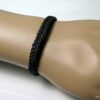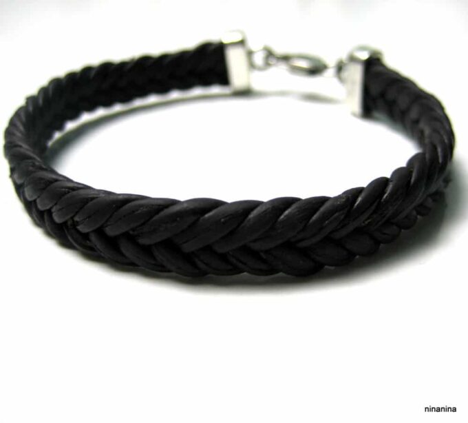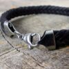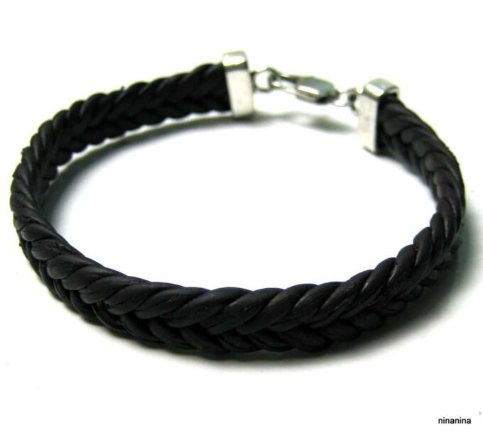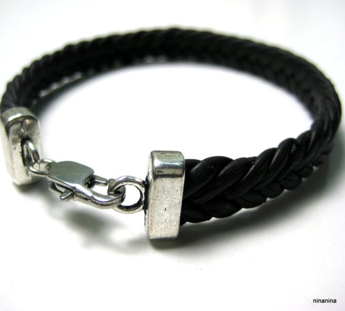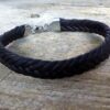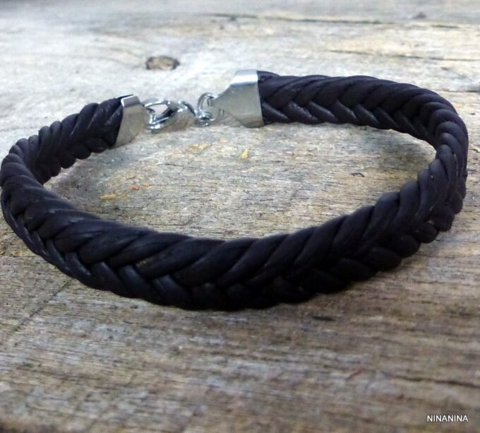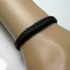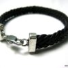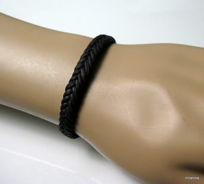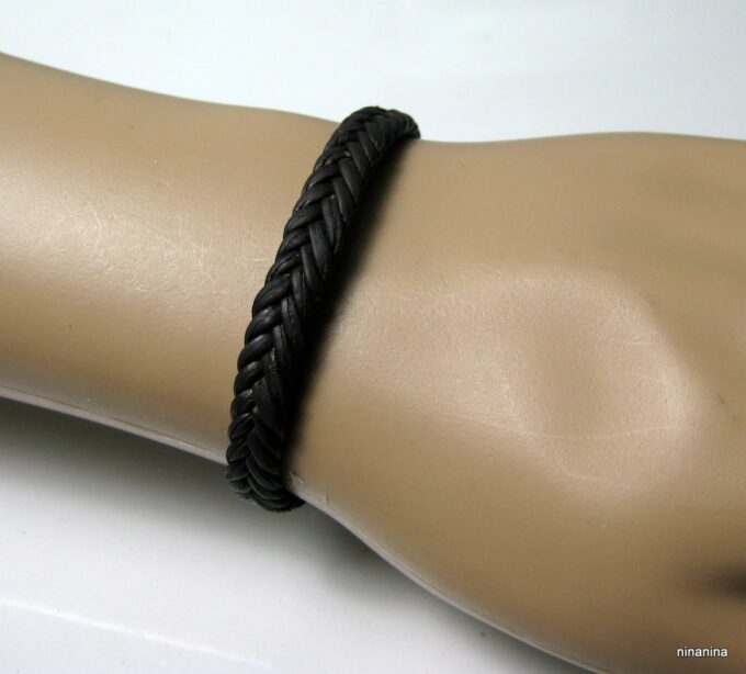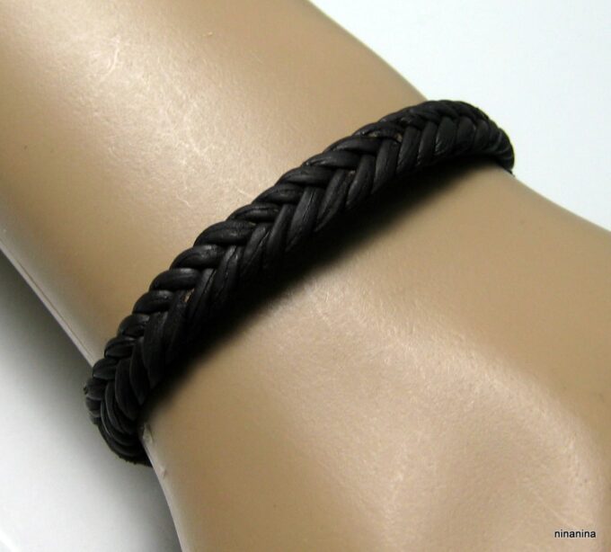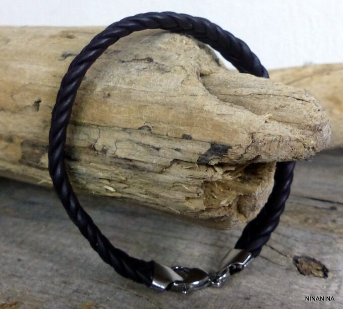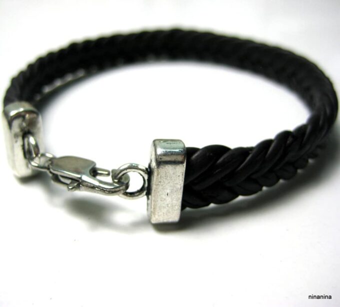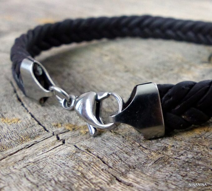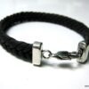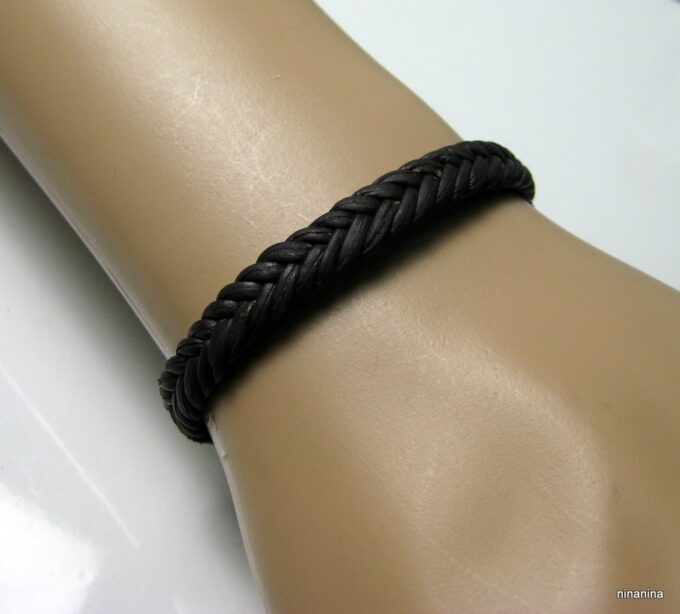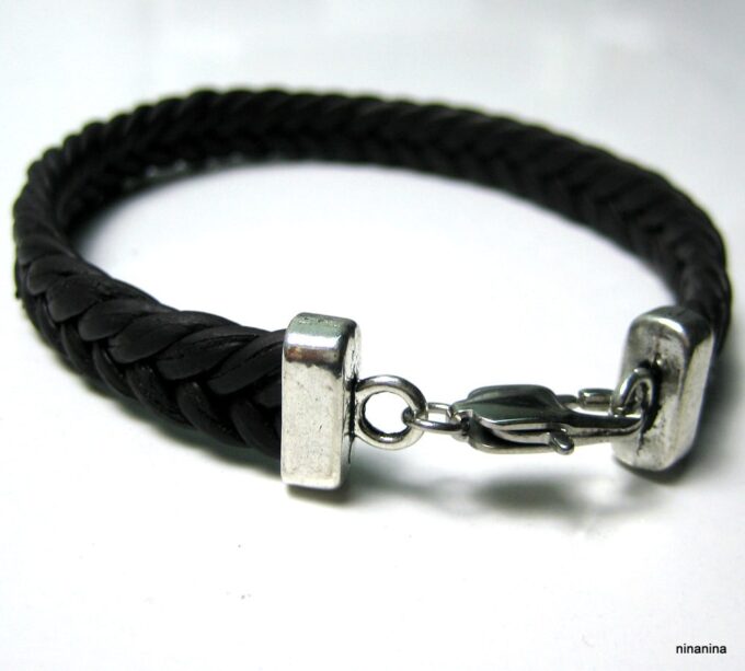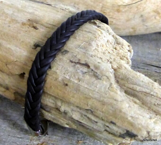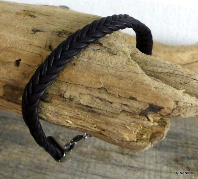 Bracelet homme cuir tressé et acier inoxydable argenté composé d’un bandeau de cuir marron chocolat tressé monté sur un fermoir en acier inoxydable.