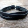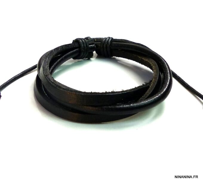 Bracelet homme cuir 3 rangs tressés composé de 3 lanières de cuir plat (5 mm de large) fermées par un cordon de coton ciré.