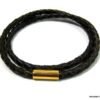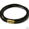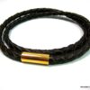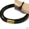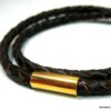 Bracelet cuir tressé marron homme acier inoxydable doré