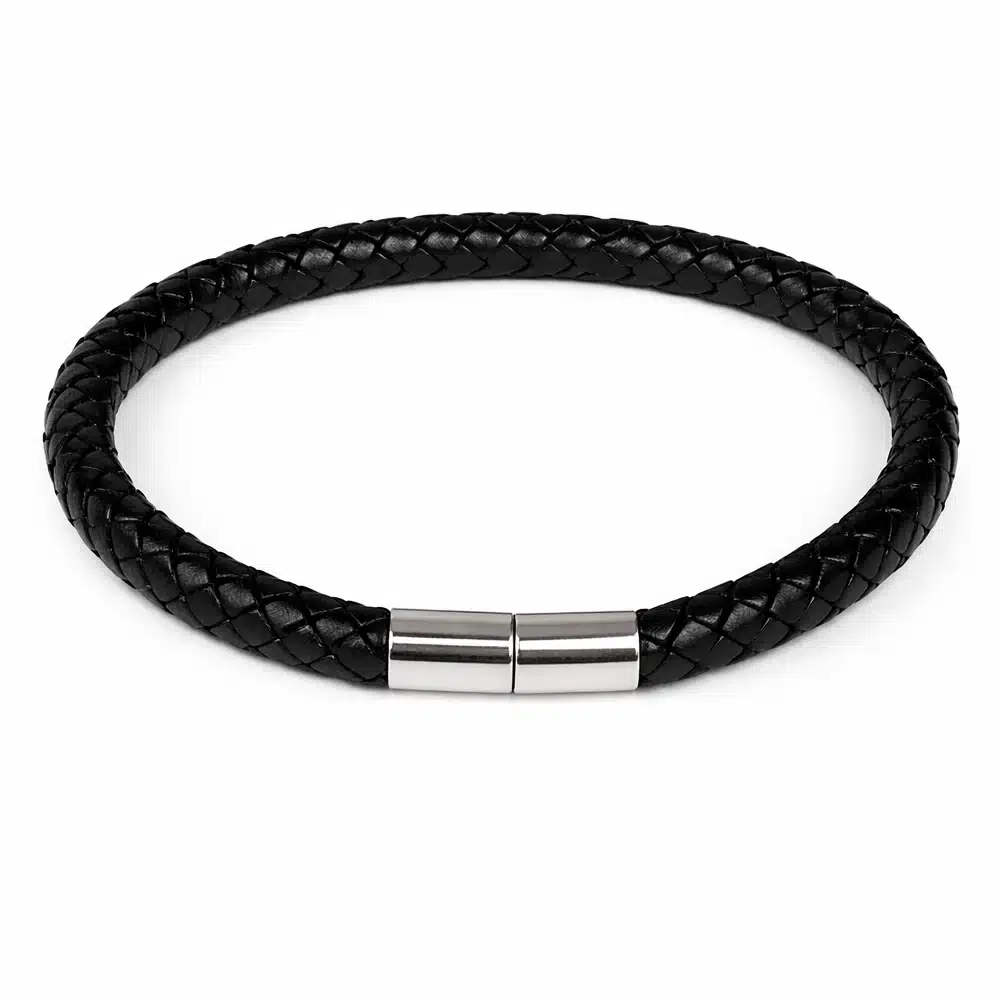 Offrez à votre poignet une touche de sophistication avec ce splendide Bracelet hommes luxe cuir tressé fermoir aimanté Argent 925 élégant et stylé ! Composé d’un cordon de cuir tressé noir (6mm de diamètre) monté sur un fermoir aimanté cylindrique en argent 925 massif, ce bracelet en cuir luxueux est un accessoire élégant et raffiné qui ajoutera une touche de style à n’importe quelle tenue.