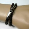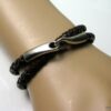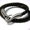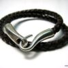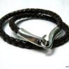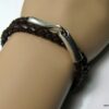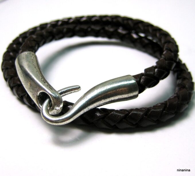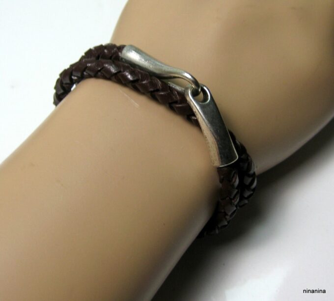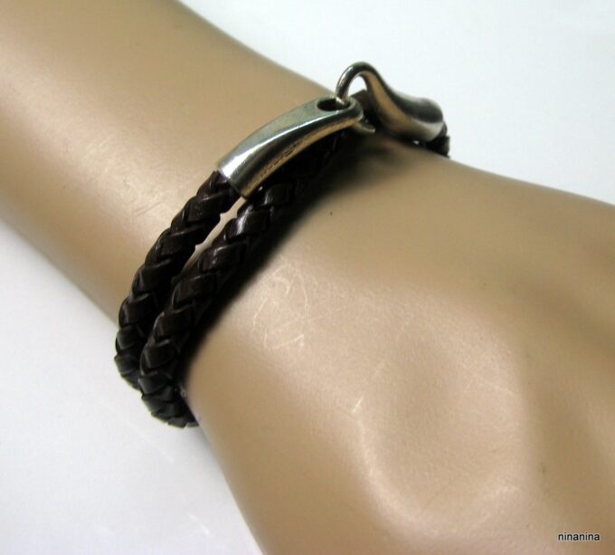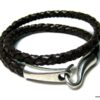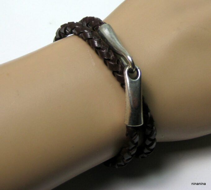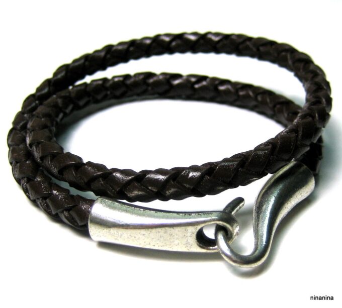Bracelet cuir tressé 2 tours composé d’un cordon de cuir tressé noir à enrouler autour du poignet, monté sur un fermoir crochet en métal argenté. Diamètre du cordon : 0,5 cm. Existe aussi en marron chocolat et naturel. Longueur : 41 cm (homme) et 38 cm (femme). TOUTE AUTRE LONGUEUR POSSIBLE – longueur souhaitée à indiquer en commentaire. Livré dans sa pochette d’organza. Bijou 100% fait-main