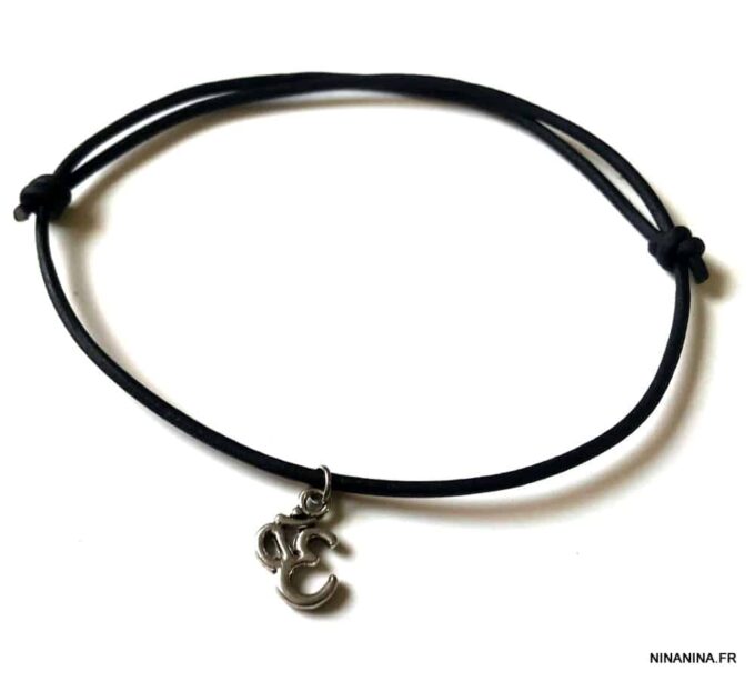 Bracelet de cheville homme pendentif ohm cordon cuir réglable