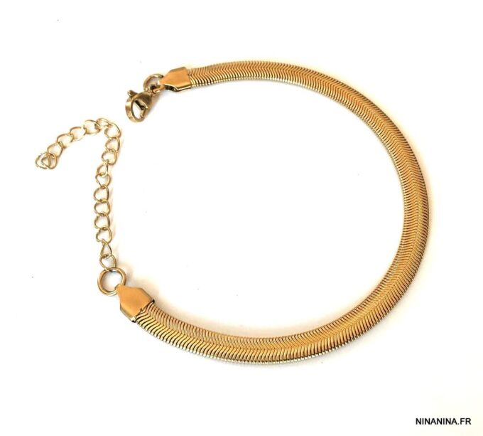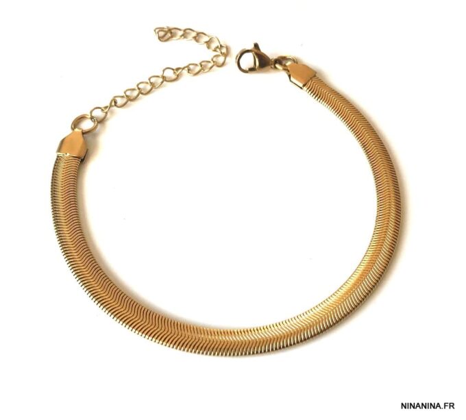 A fois robuste et discret, ce Bracelet bras ethnique maille serpent Acier doré est bijou chic très raffiné. Son confort au biceps et la beauté de sa chaine maille serpent plate habilleront en un clin d’œil le haut de votre joli bras. Proposé en édition limitée, ce bracelet bras de charme vous séduira par son caractère et sa personnalité.