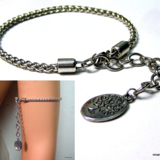 Fermoir mousqueton et chainette de réglage.