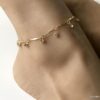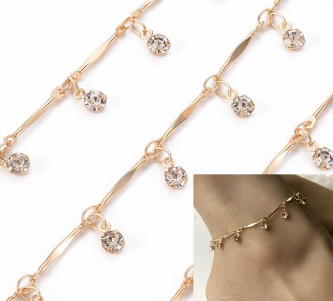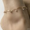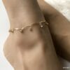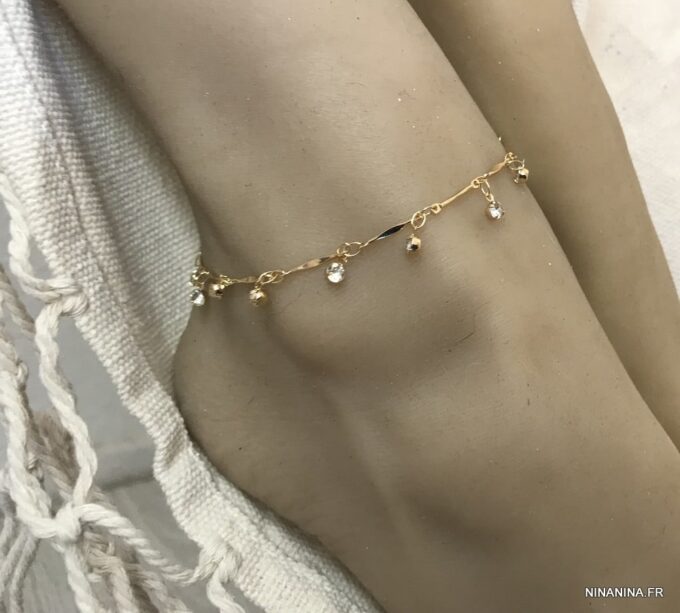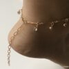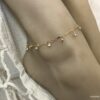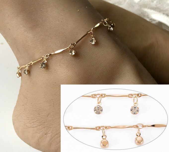 Avec ses petites breloques rondes serties d’oxyde de zirconium blanc qui courent sur la cheville, ce splendide bracelet de cheville en laiton plaqué or vous fera tout simplement craquer.