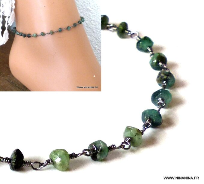 Un Bracelet de cheville pierres précieuses émeraude brute sexy et raffiné!
