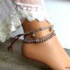 Bracelet de cheville lacet daim rouge