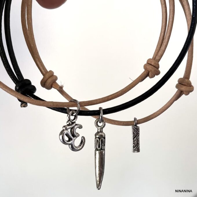 Grâce à sa taille ajustable, ce bracelet peut aussi être porté autour du poignet, seul pour un style minimaliste, ou en accumulation avec d’autres bracelets en cuir, perles ou cordons pour un effet layering ethnique ou rock. Il accompagne aussi bien un look casual (t-shirt blanc + jean brut) qu’une tenue plus bohème ou spirituelle.