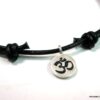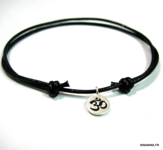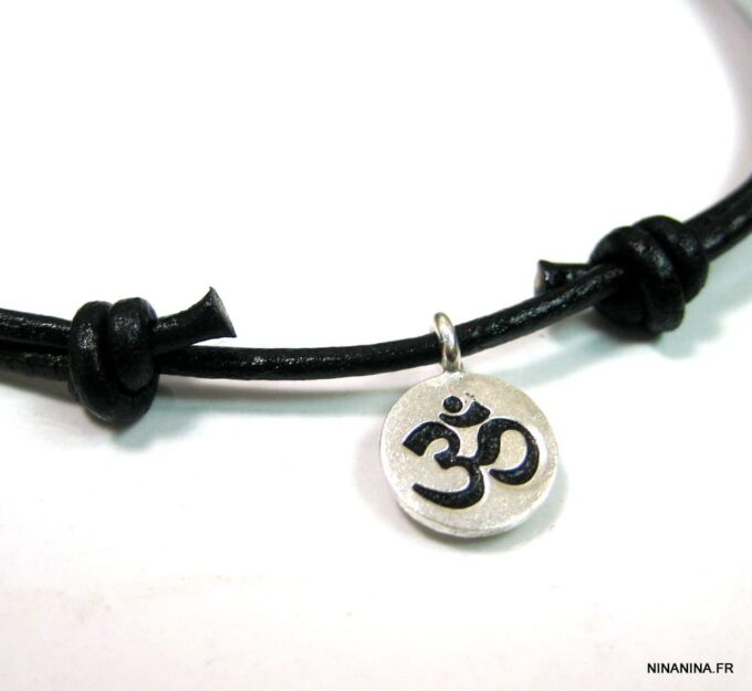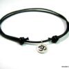 Esprit zen pour ce Bracelet de cheville homme pendentif ohm cordon cuir composé d’une breloque OHM chakra en métal argenté montée sur un lien de cuir noir (2mm de diamètre) !