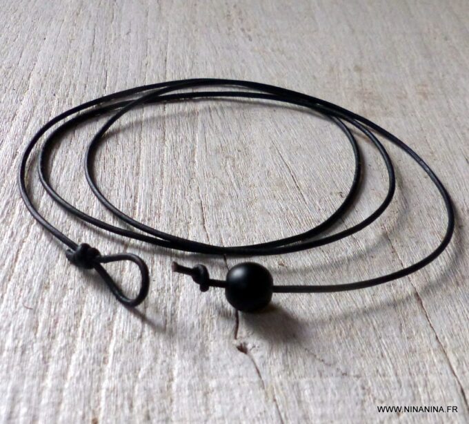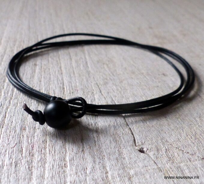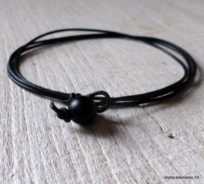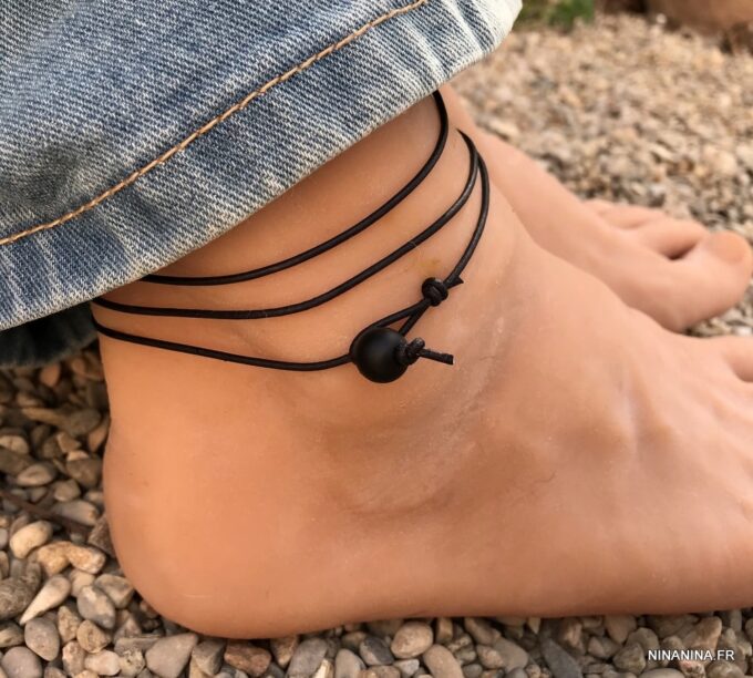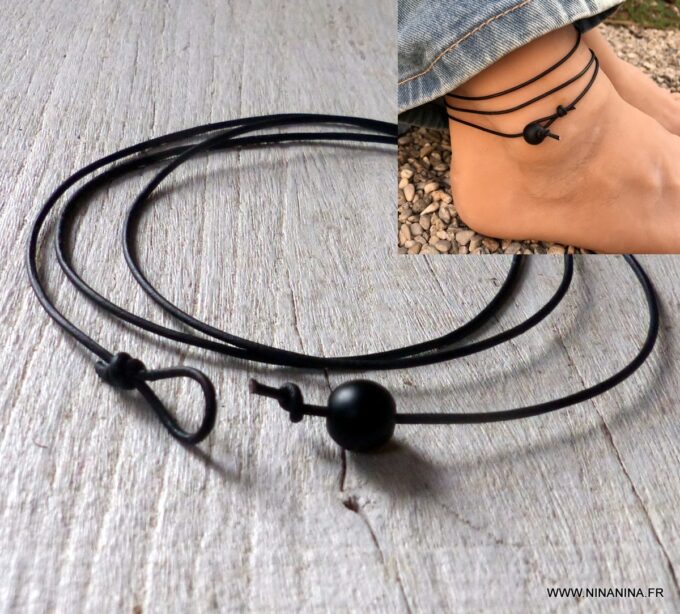 A la recherche d’un bracelet de cheville ethnique ? Ce Bracelet de cheville homme perle onyx noir mat composé d’une perle ronde en onyx noir montée sur cordon de cuir noir, à enrouler autour de la cheville (3 tours), est celui qu’il vous faut !
