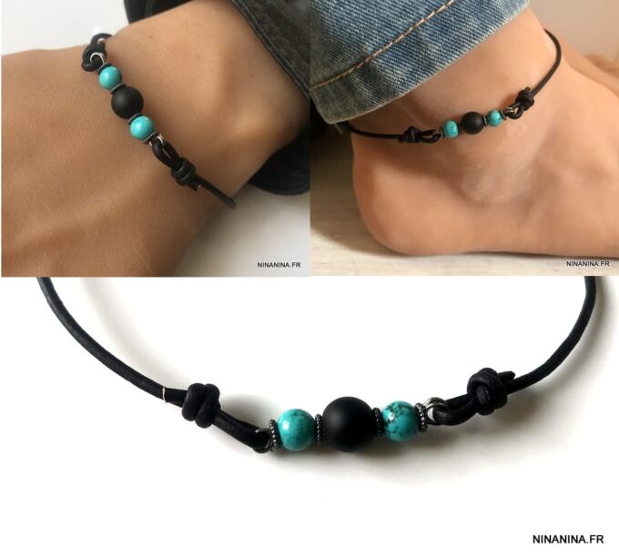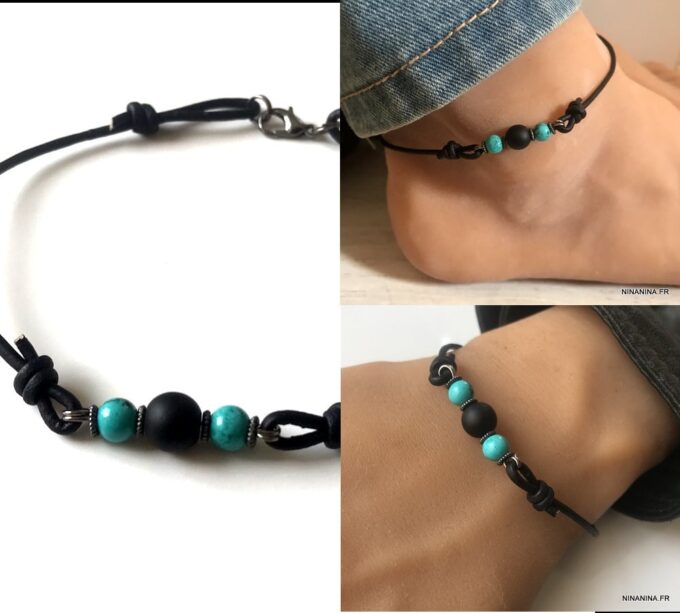 Un Bracelet cheville original en onyx et turquoise : les bienfaits de ces pierres naturelles
