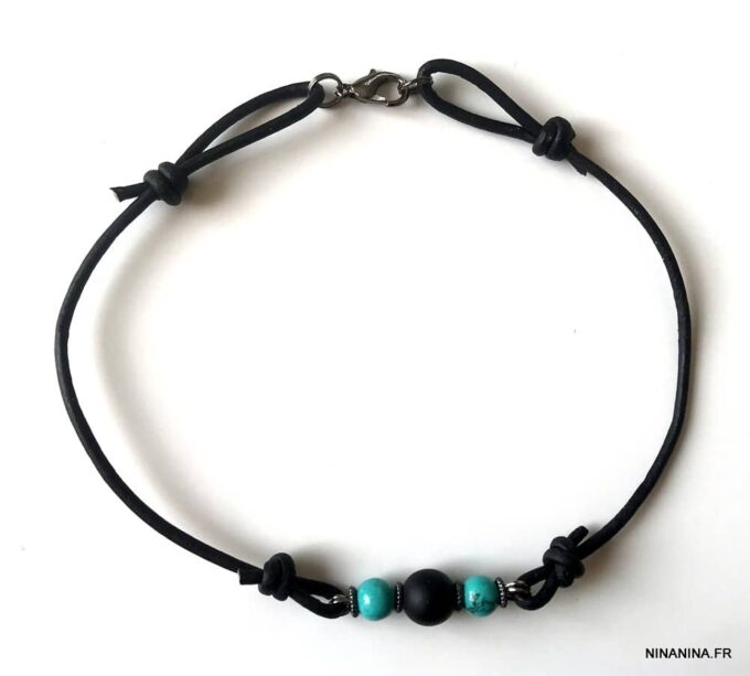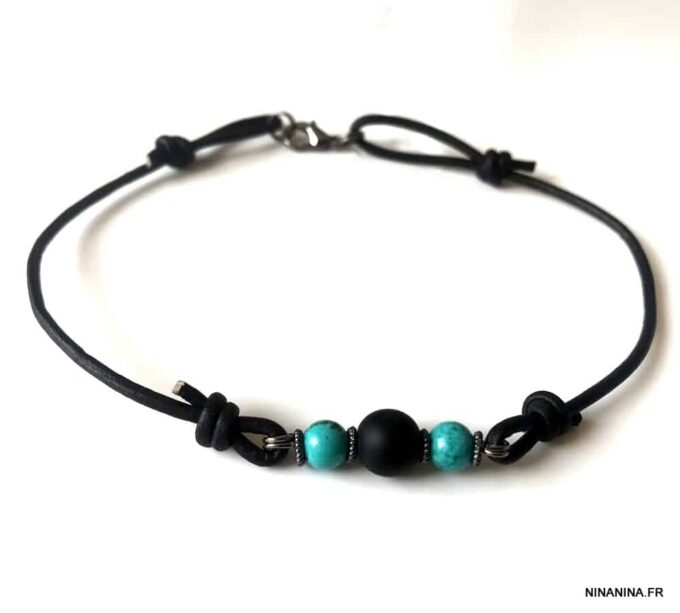 Des envies d’été et de soleil? Besoin de sable chaud, de coups de soleil et de vagues déferlantes, Ce Bracelet cheville original homme pierre onyx noire turquoise composé d’une pierre en onyx noir véritable et de perles en turquoise naturelle noire montées sur cordon de cuir noir, vous mettra à lui tout seul dans le bain!