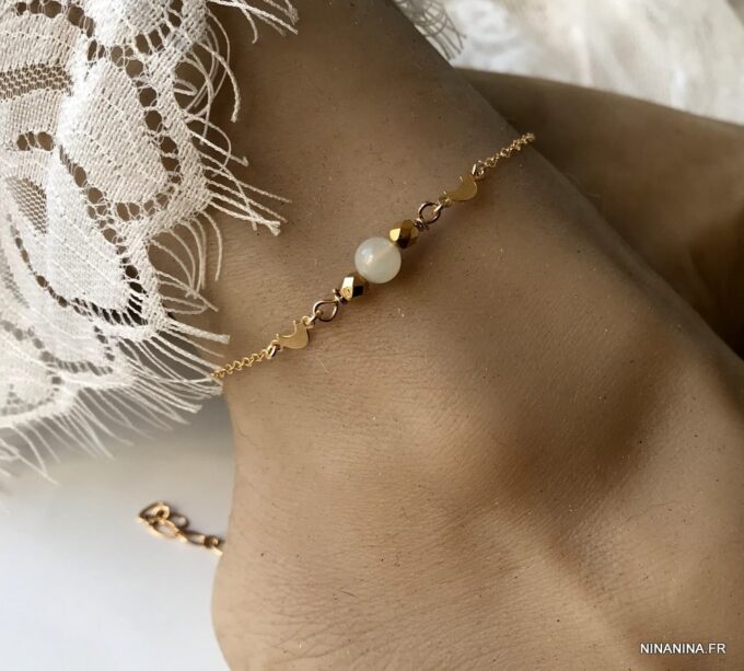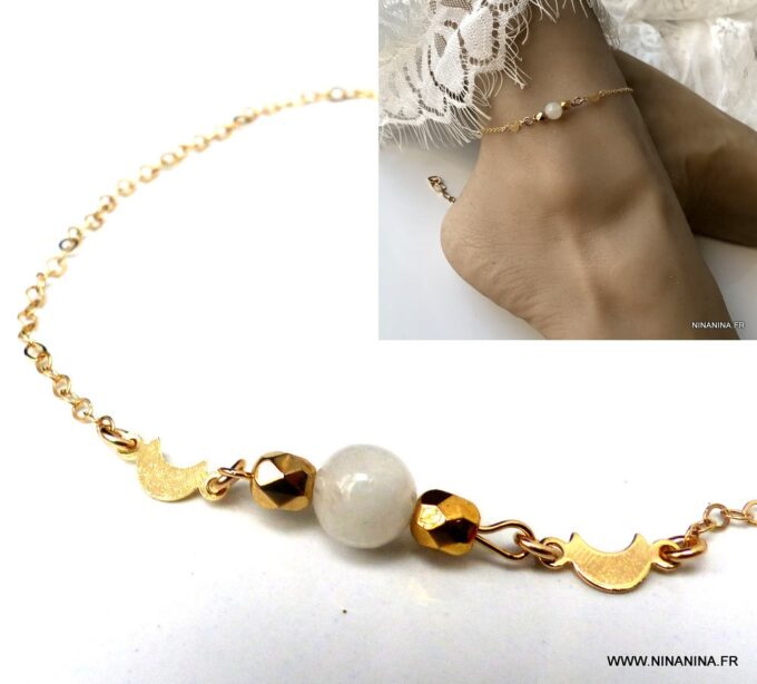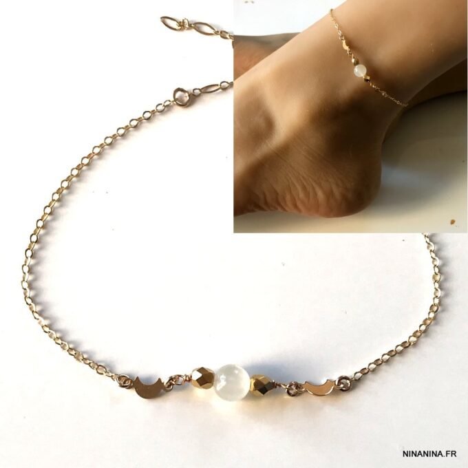 Une chaine de cheville pierre de lune fabriquée en France