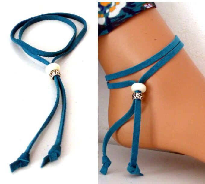 Bracelet de cheville lacet daim rouge