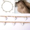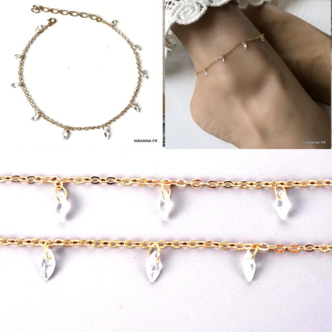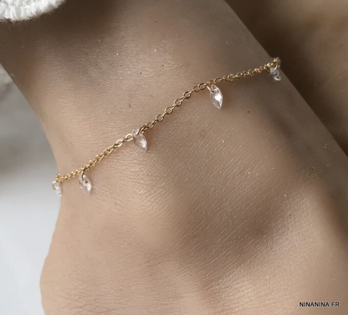Avec ses petites breloques en forme de goutte serties d’oxyde de zirconium blanc qui courent sur la cheville, ce splendide bracelet de cheville plaqué or vous fera tout simplement craquer.