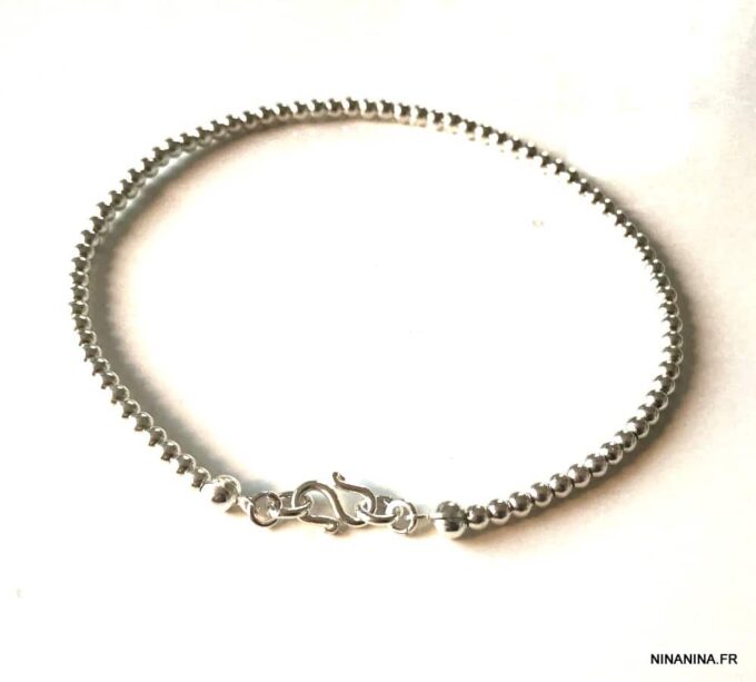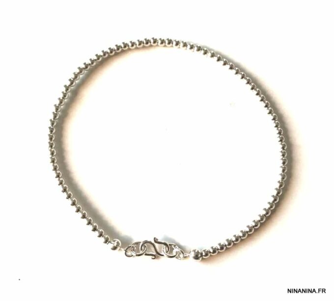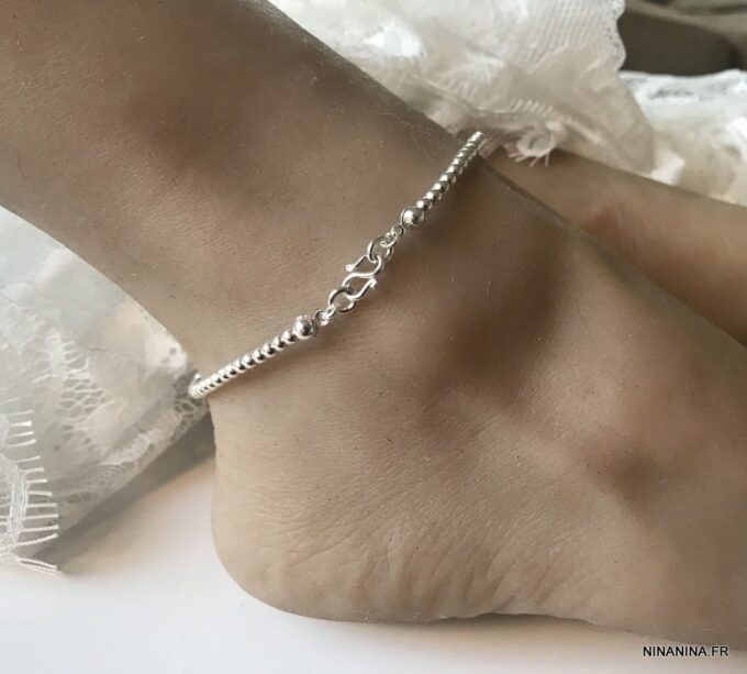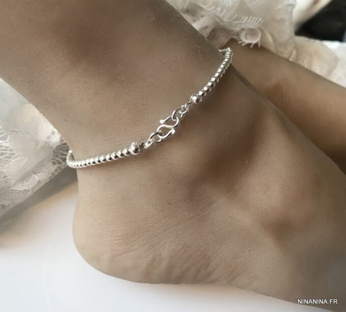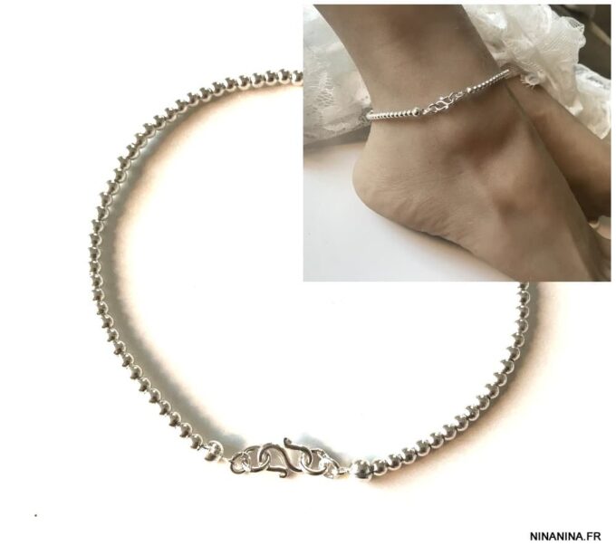 Chaine de cheville argent femme perles infini composé de perles rondes en argent 925 montées sur un fil nylon très solide.