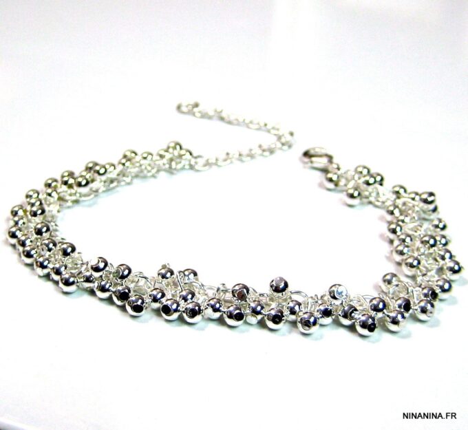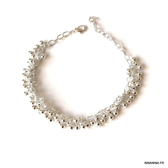 Laissez-vous séduire par ce Bracelet perle cheville argent plaqué pour femme composé de petites perles en plaqué argent (4mm) montées sur une chainette en plaqué argent. De plus, ce Bracelet de cheville argent de haute qualité est unique et fabriqué à la main, de façon artisanale dans notre atelier en France. Enfin, il est terminé par un fermoir mousqueton et une chainette de rallongement.