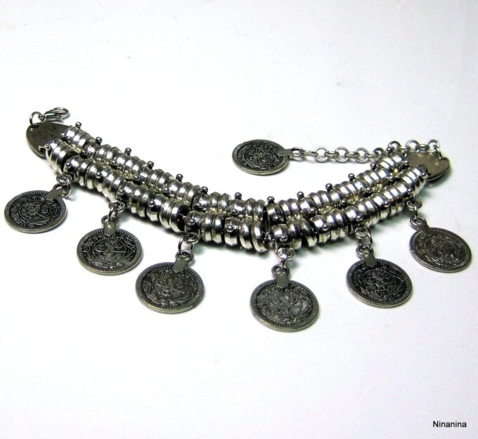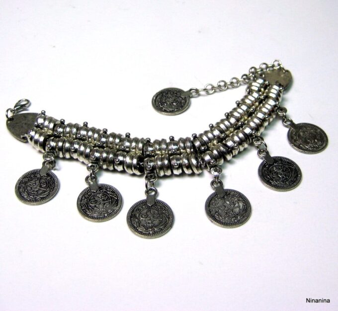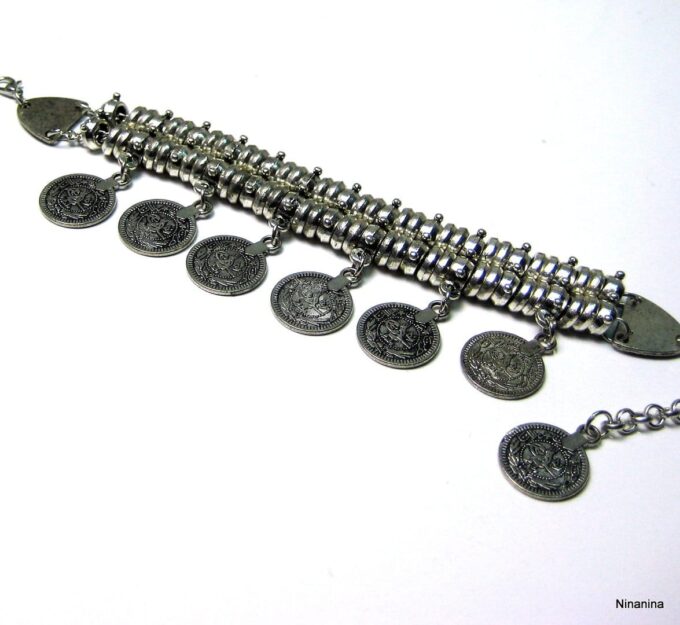 Dim : 15 x 5 cm. Longueur (fermoir compris) : de 19 à 23 cm réglable.