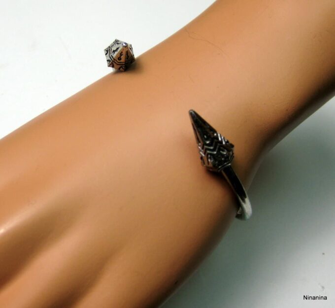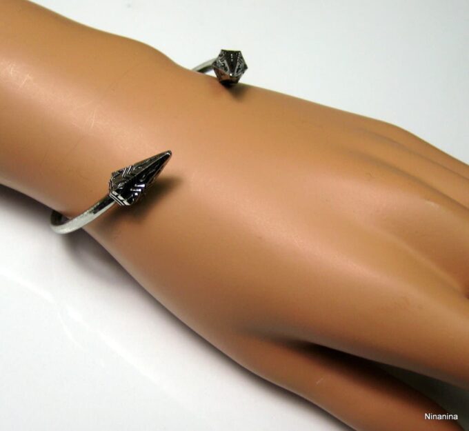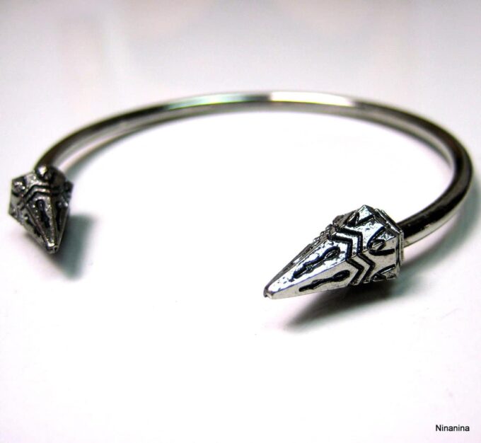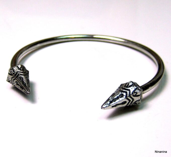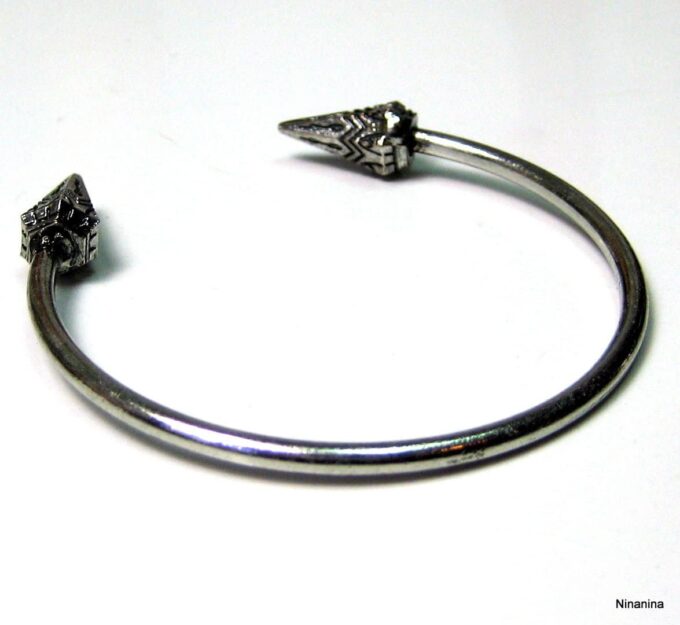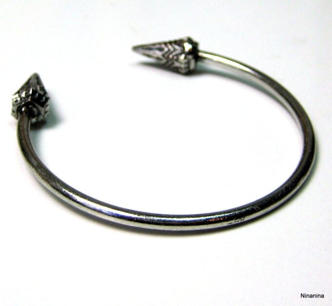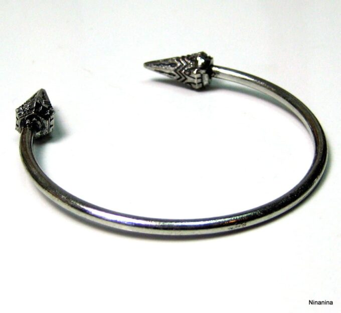 Bracelet ethnique jonc femme flèches métal argenté terminé par deux flèches.