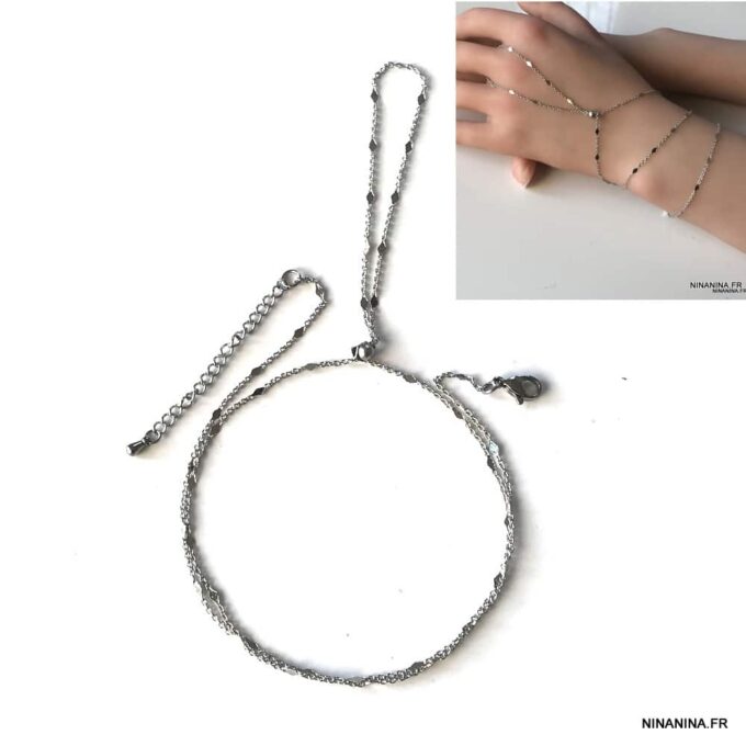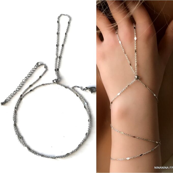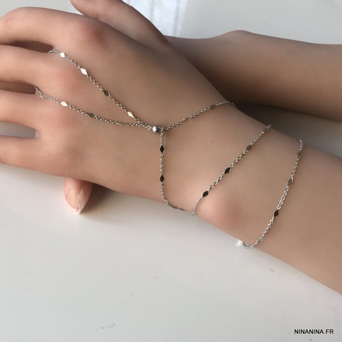 Si vous aimez les Chaines de main originales, Ce bracelet de main ne vous deçevra pas! Portez ce joli Bijou de main tendance seul pour un look minimaliste ou mixé à d’autres Bracelets Ninanina.