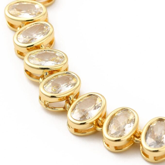 Bracelet Femme Doré à Maillons Ovales – Zircon Cubique Clair Étincelant
