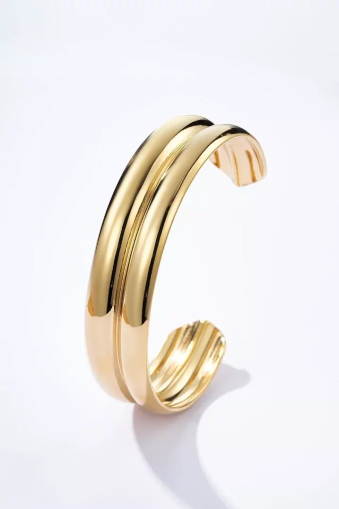 Bracelet Doré Acier Inoxydable Manchette Deux Rangs – Élégance Durable