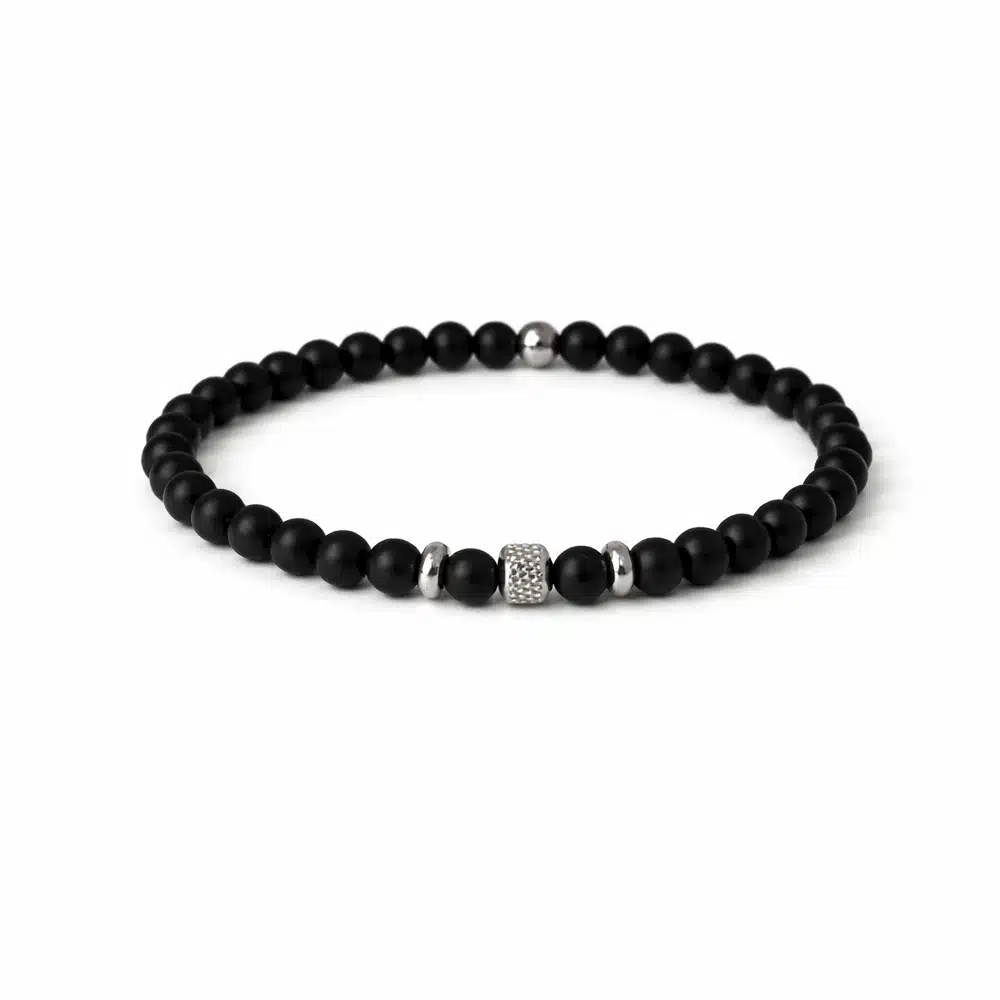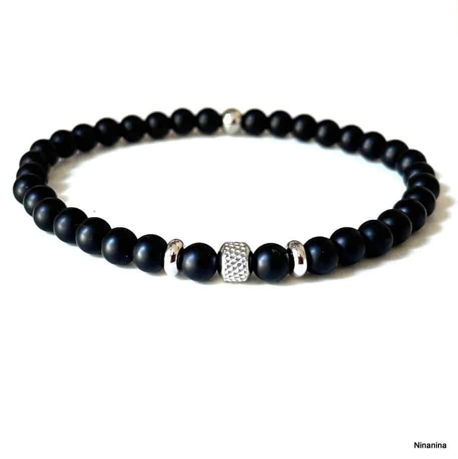 Ce splendide Bracelet en Onyx noir et Acier Inoxydable homme est celui qu’il vous faut ! Composé de pierres rondes en onyx noir mat et de rondelles en Acier inoxydable argenté montées sur un elastique très solide.