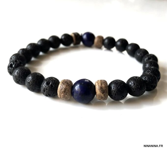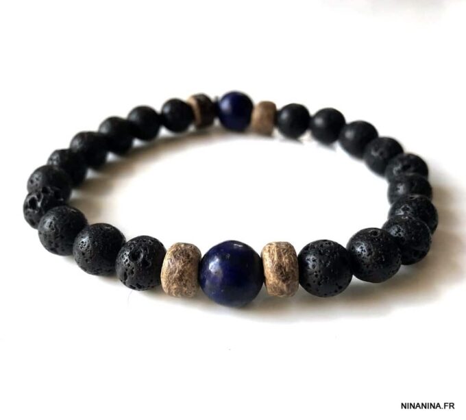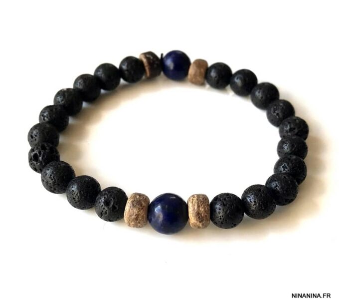 Soyez le premier à laisser votre avis sur “Bracelet en pierre de lave et Lapis Lazuli bleu homme”