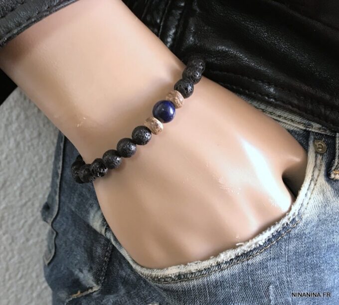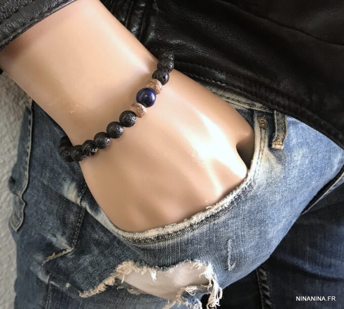 Vous allez craquer pour la beauté brute et minérale de ce Bracelet en pierre de lave et Lapis Lazuli bleu homme  ! Look intemporel, énergie mystique et originalité, un bijou pour amateurs de pierres fines et de bijoux qui vous apportent bien plus qu’une simple beauté esthétique!
