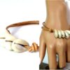 Bracelet cauri femme sur cordon cuir réglable composé de coquillages cauri montés sur un cordon de cuir naturel (2mm de diamètre).