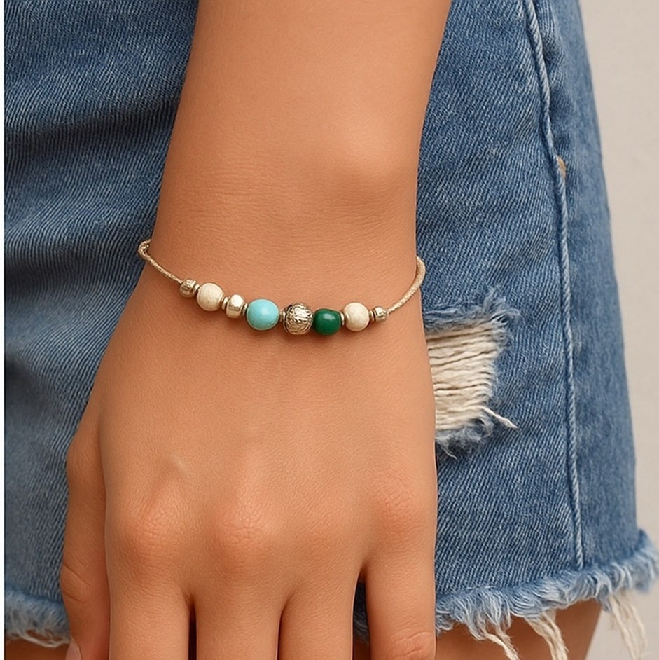 Ce bracelet avec turquoise pour femme de haute qualité est unique et fabriqué à la main, de façon artisanale et en quantité limitée dans notre atelier du sud de la France. Chaque pièce faite sur mesure convient pour la majorité des poignets, la longueur proposée est réglable de 15 à 25 cm. Merci de laisser un commentaire si vous souhaitez une autre longueur.