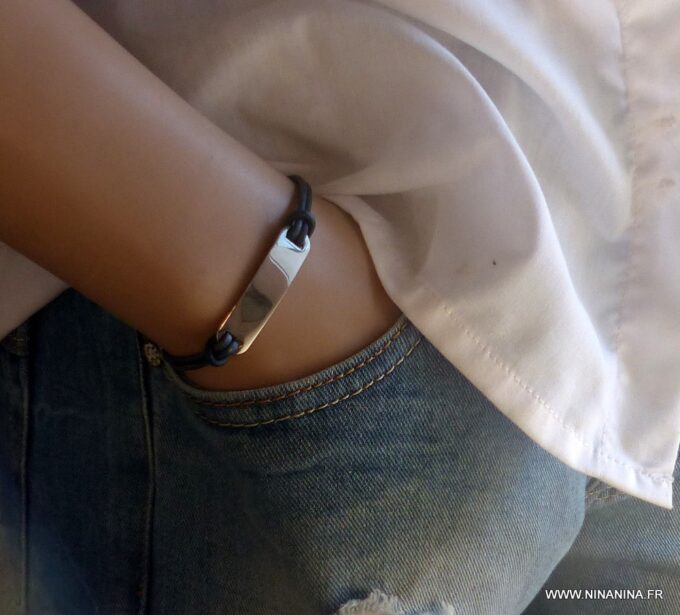 Vous souhaitez modifier ou ajouter une pièce? modifier la couleur ou la matière ? Cette gourmette garçon en cuir et acier est faite sur mesure et comme la majorité des bijoux Ninanina, est personnalisable. Vous pouvez demander à modifier certaines caractéristiques de ce bijou. La longueur proposée est de 20 cm mais il est possible d’opter pour une toute autre longueur. De la même façon, vous pouvez choisir un autre fermoir que le fermoir mousqueton proposé par exemple. Il vous suffit de laisser un commentaire et nous élaborerons ensemble votre nouveau bijou personnalisé.