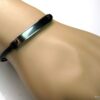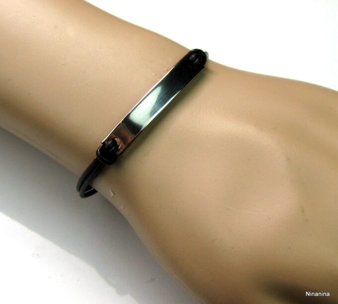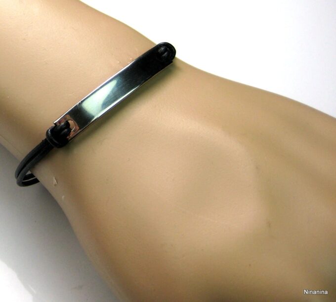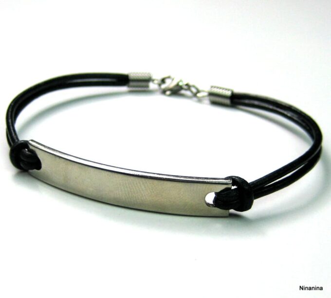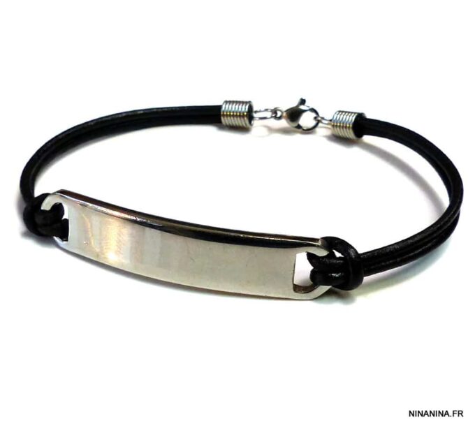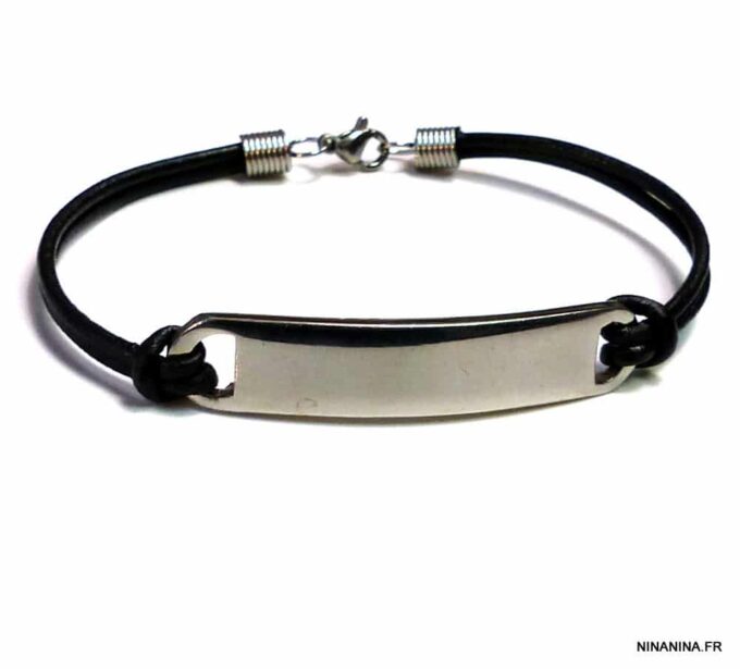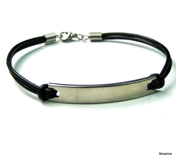 Cette Gourmette garçon Acier inoxydable Et Cuir est devenu un bijou emblématique. Cet élégant bracelet homme cordon cuir au look indémodable est constitué d’une plaque gourmette en acier inoxydable montée sur un double cordon de cuir noir (2 mm de diamètre); Il s’ouvre (et se ferme) au moyen d’un fermoir mousqueton classique, très robuste et simple d’utilisation.