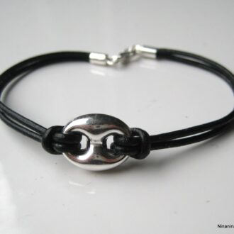 Bracelet homme daim grain de café argent massif composé d’un grain de café en argent 925 monté sur un cordon de daim naturel (3mm de large).