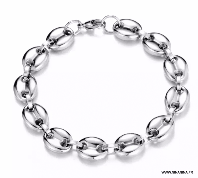 Le bracelet maille grain de café plaît beaucoup aux hommes comme aux femmes. Avec ses maillons ovalisés possédant deux trous centrés, cette maille est à la fois originale et très tendance. Contrairement à une maille resserrée comme c’est le cas pour la maille forçat, la chaine maille grain de café a un aspect plus aéré. Notre vaste sélection de bijoux graine de café vous permettra de faire le bon choix parmi une multitude de tailles et de largeurs. Profitez-en !