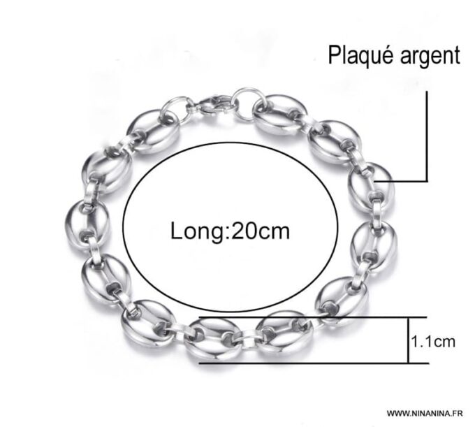 Le côté brut, robuste et épuré de ce Bracelet graine de café Argent homme ou femme colleront parfaitement à l’homme viril et décomplexé que vous êtes ! Ce Bracelet Argent plaqué et sa maille si particulière en forme de grain de café vous suivra en toutes circonstances!