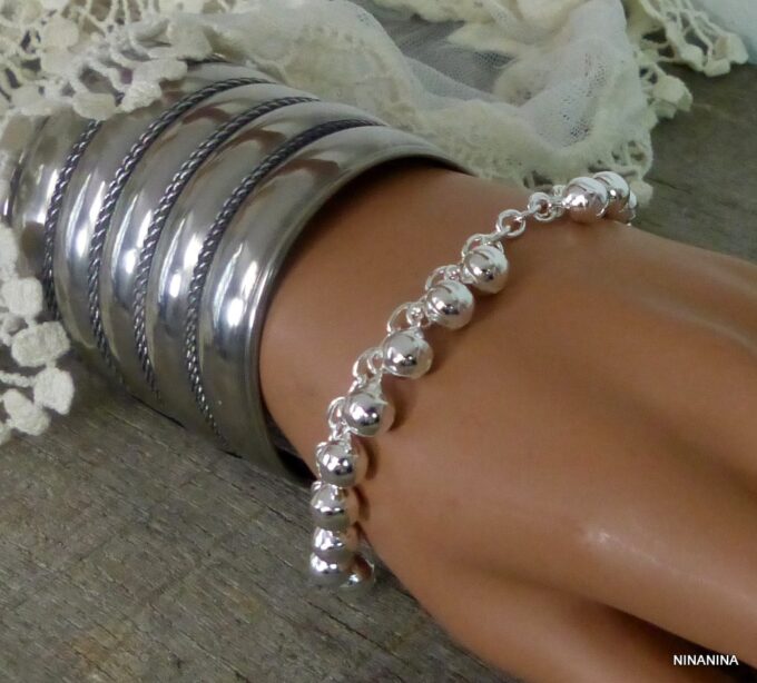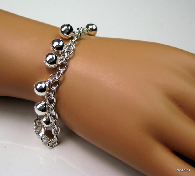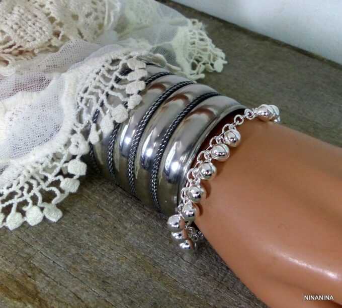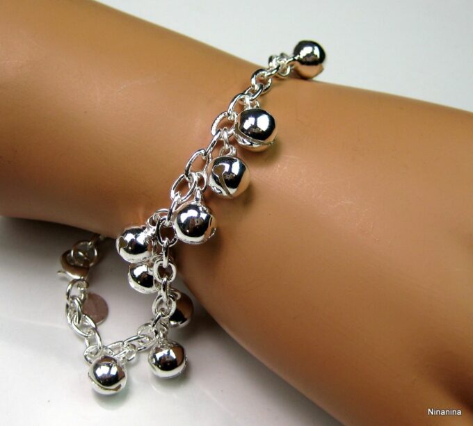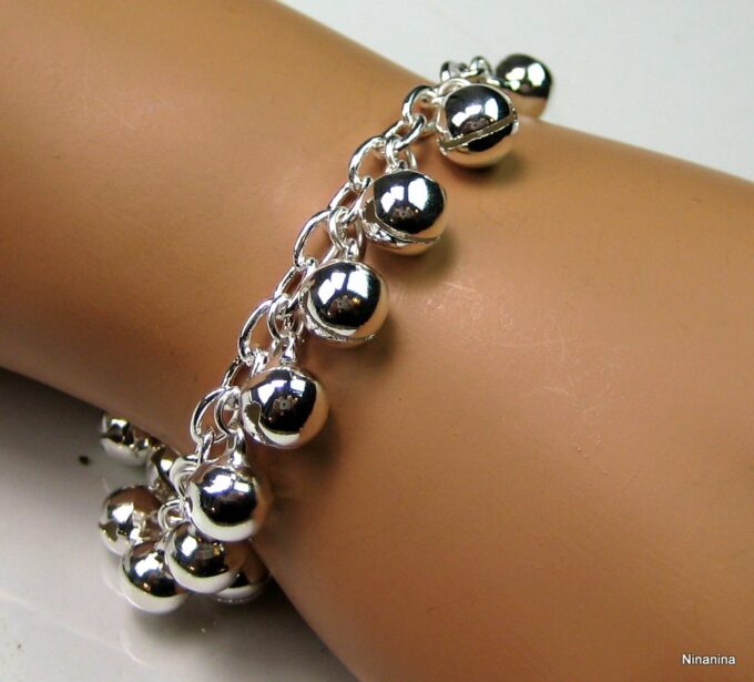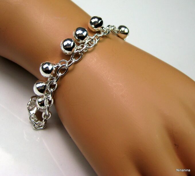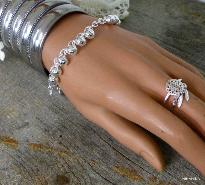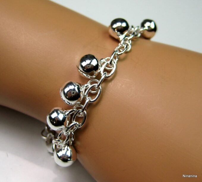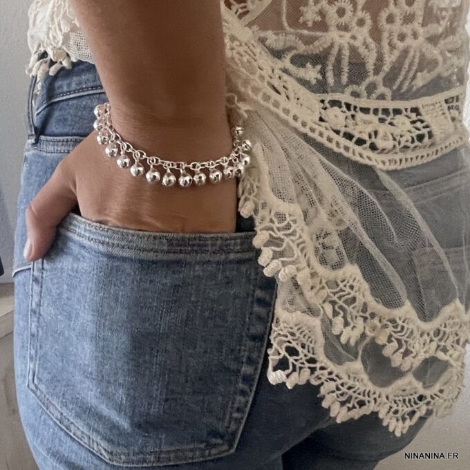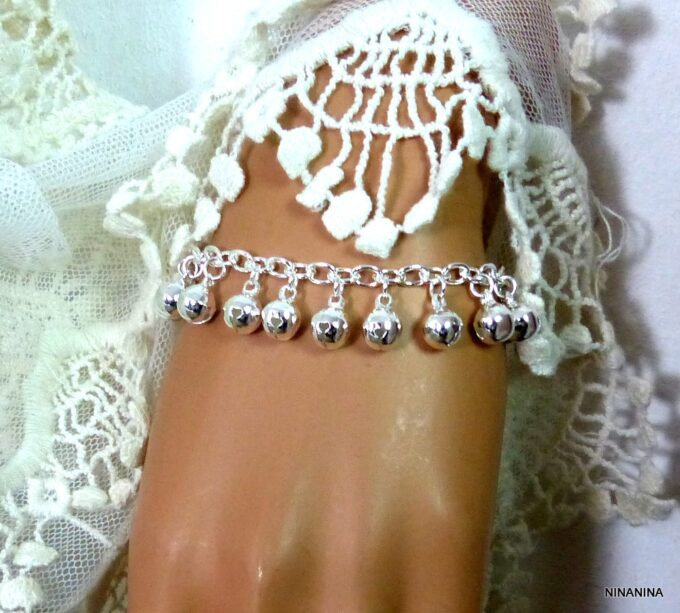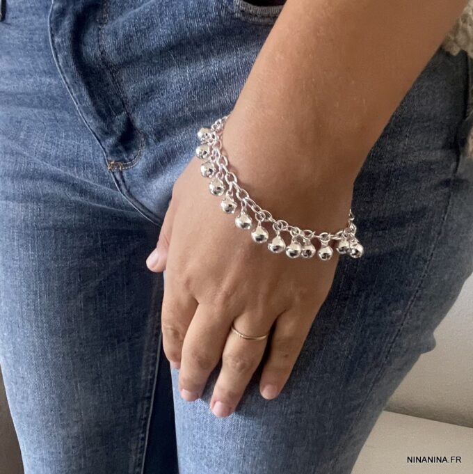 Bracelet grelots femme Argent plaqué bijou indien grelot composé de grelots montés sur chainette maillons ovales plaqué argent.