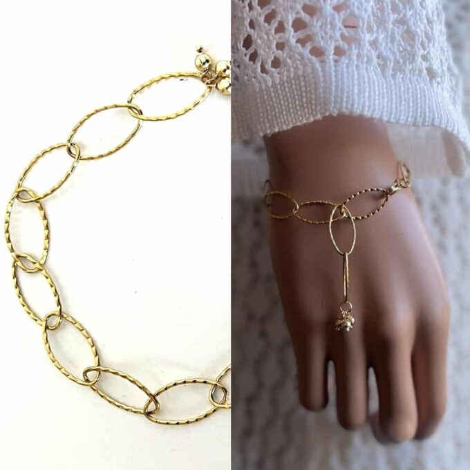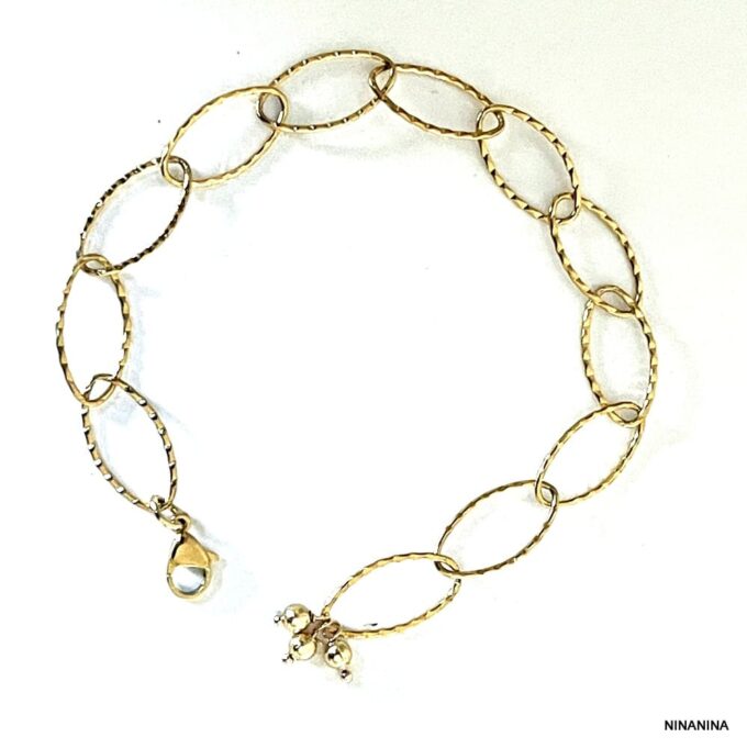 Sublimez votre poignet avec ce superbe Bracelet Gros Maillon Ovale Acier Inox Doré Femme ! Composé de larges maillons ovales et terminé par un fermoir mousqueton sûr et facile d’utilisation, il est rehaussé de trois petites perles dorées qui ajoutent à son charme.