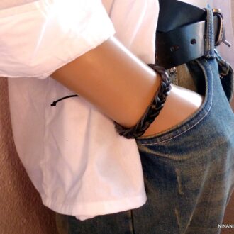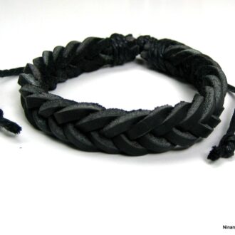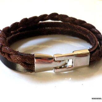 Bracelet homme cuir tressé et lisse fermoir métal argenté