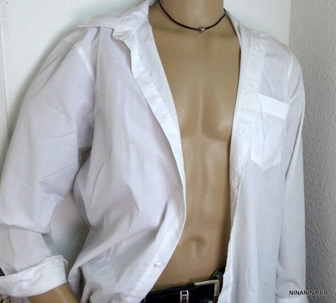 Bracelet homme en acier inoxydable. Largeur : 0,8 cm. Longueur : 21,5 cm env. Taille unique. Livré dans sa pochette d’organza.
