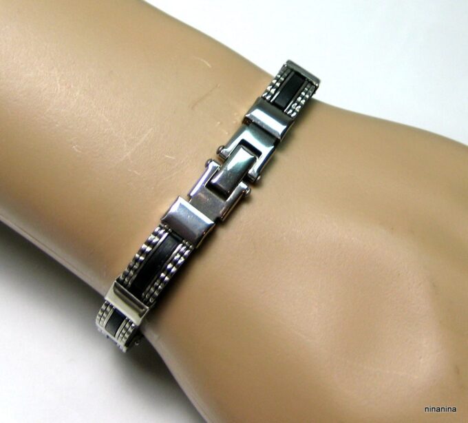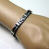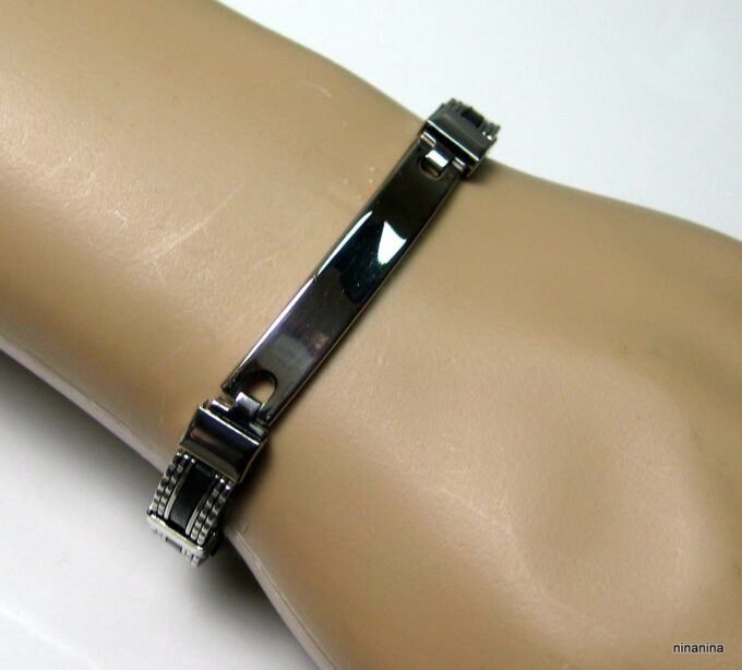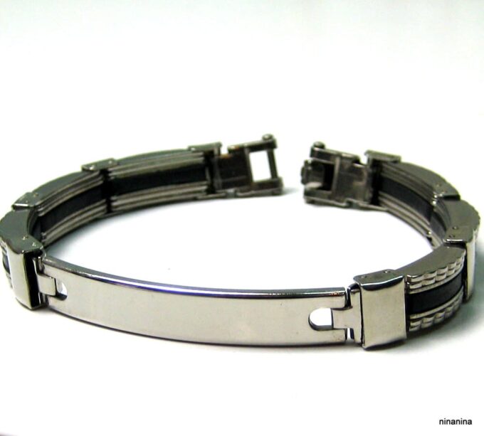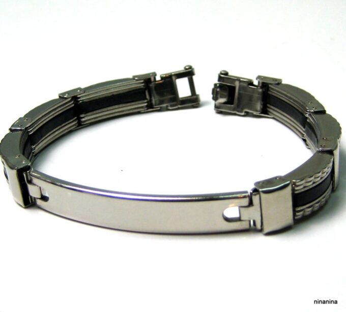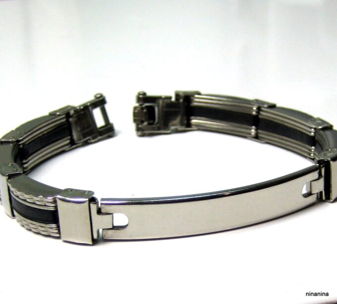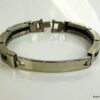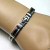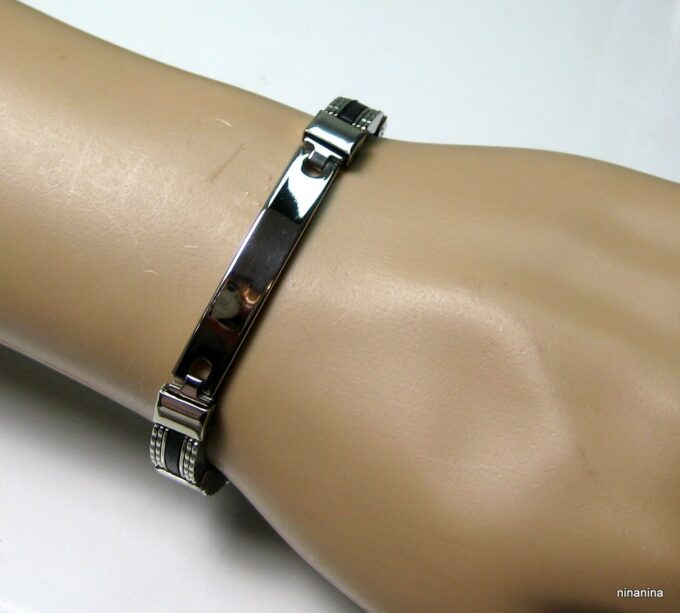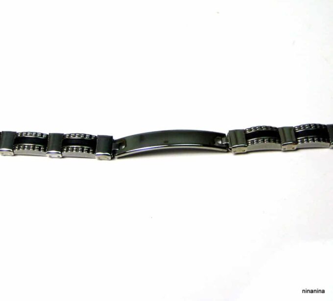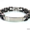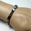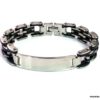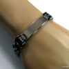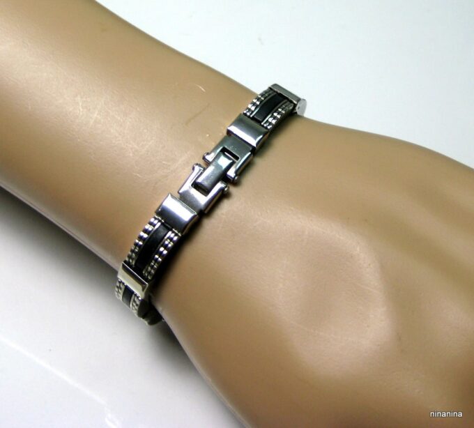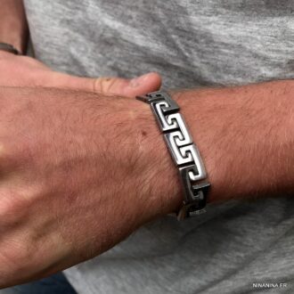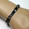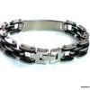 Gourmette Acier inoxydable argent homme et cuir noir. Largeur : 0,8 cm. Longueur : 20,5 cm env. Taille unique. Livré dans sa pochette d’organza.