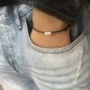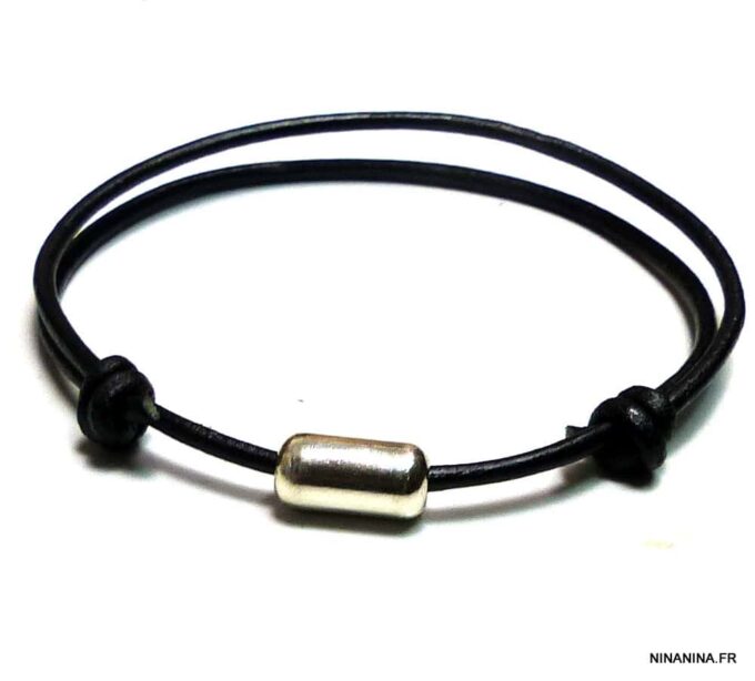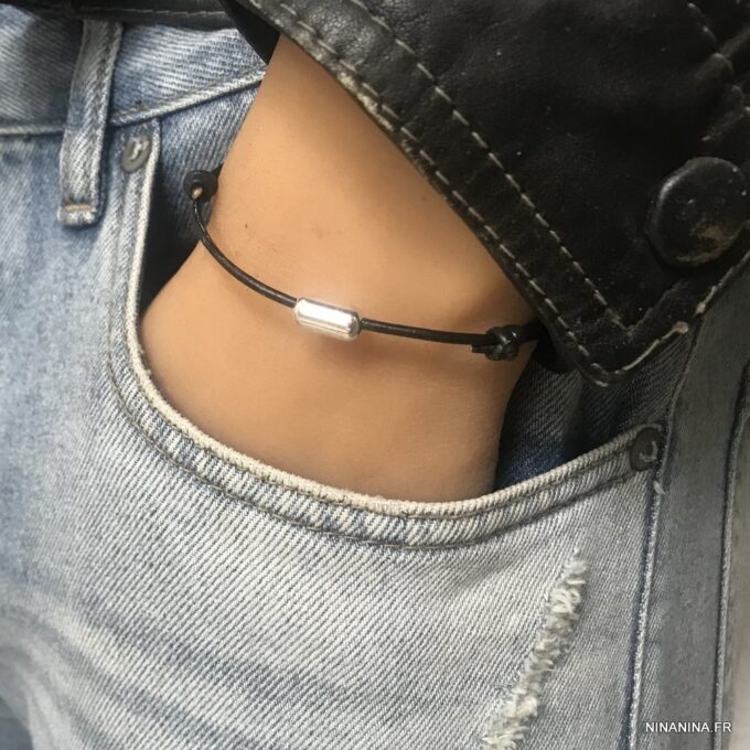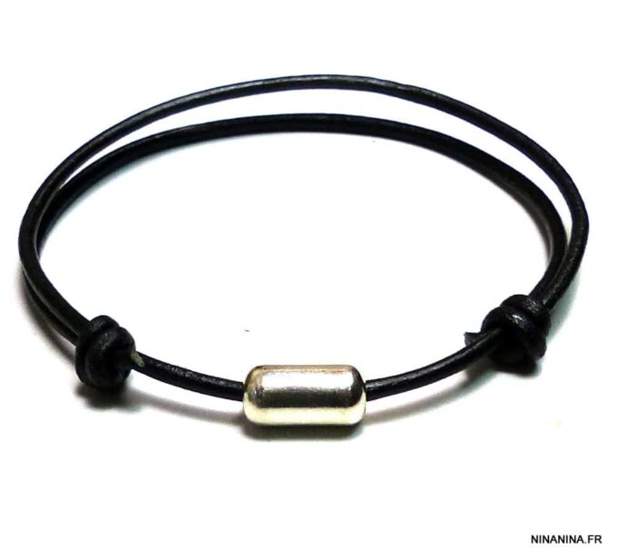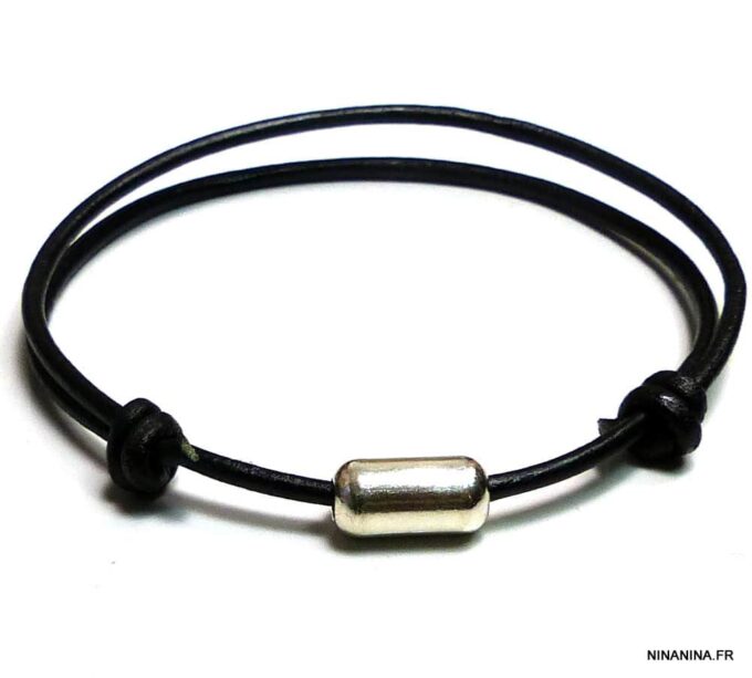 Sobre, chic et décontracté, ce Bracelet homme cordon et Argent 925 perle tube s’adaptera à toutes vos tenues ! Composé d’une perle tube en argent 925 monté sur un cordon en cuir noir de 2mm de diamètre, il est réglable grâce à ses noeuds coulissants. Bien ajusté au tour du poignet, il ne risque pas de glisser de haut en bas à chaque fois.