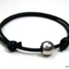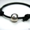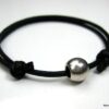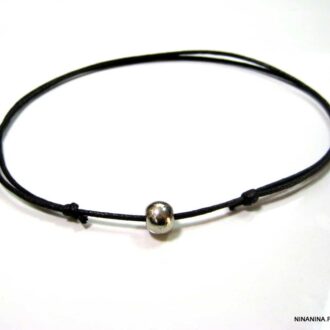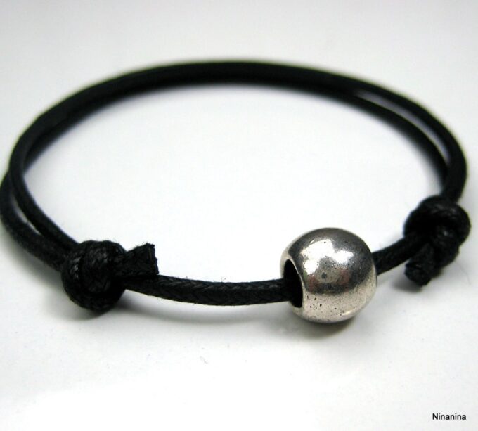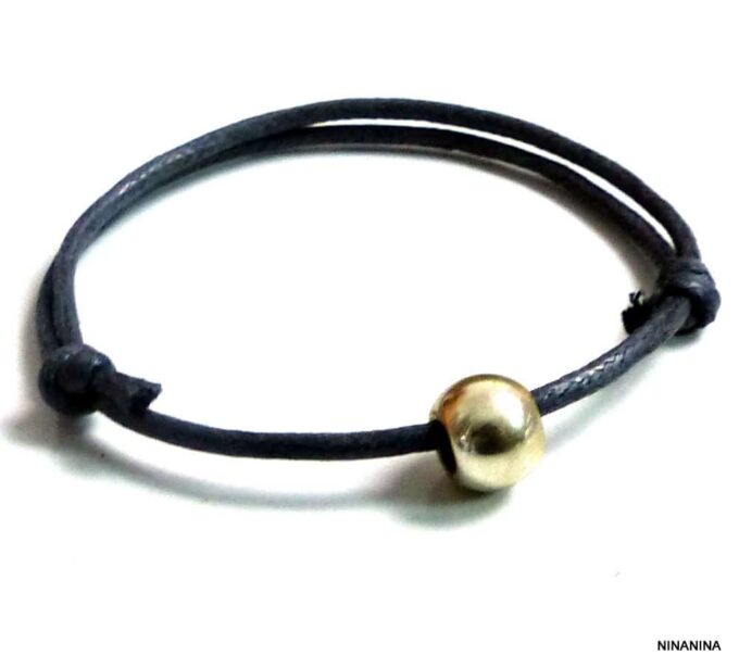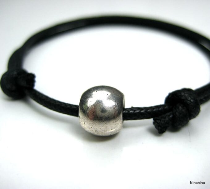Bracelet homme cordon gris perle acier composé d’une perle cylindrique en acier inoxydable montée sur un cordon de coton ciré gris (2 mm de diamètre).