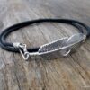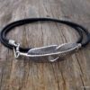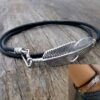 Bracelet cuir plume double tour fermoir Argent 925 composé d’un pendentif plume en métal argenté vieilli monté sur un double tour de cordon cuir noir.
