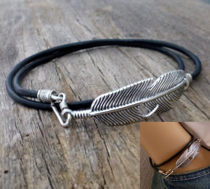 A offrir aux amoureux de bijoux plumes et bracelets cuir
